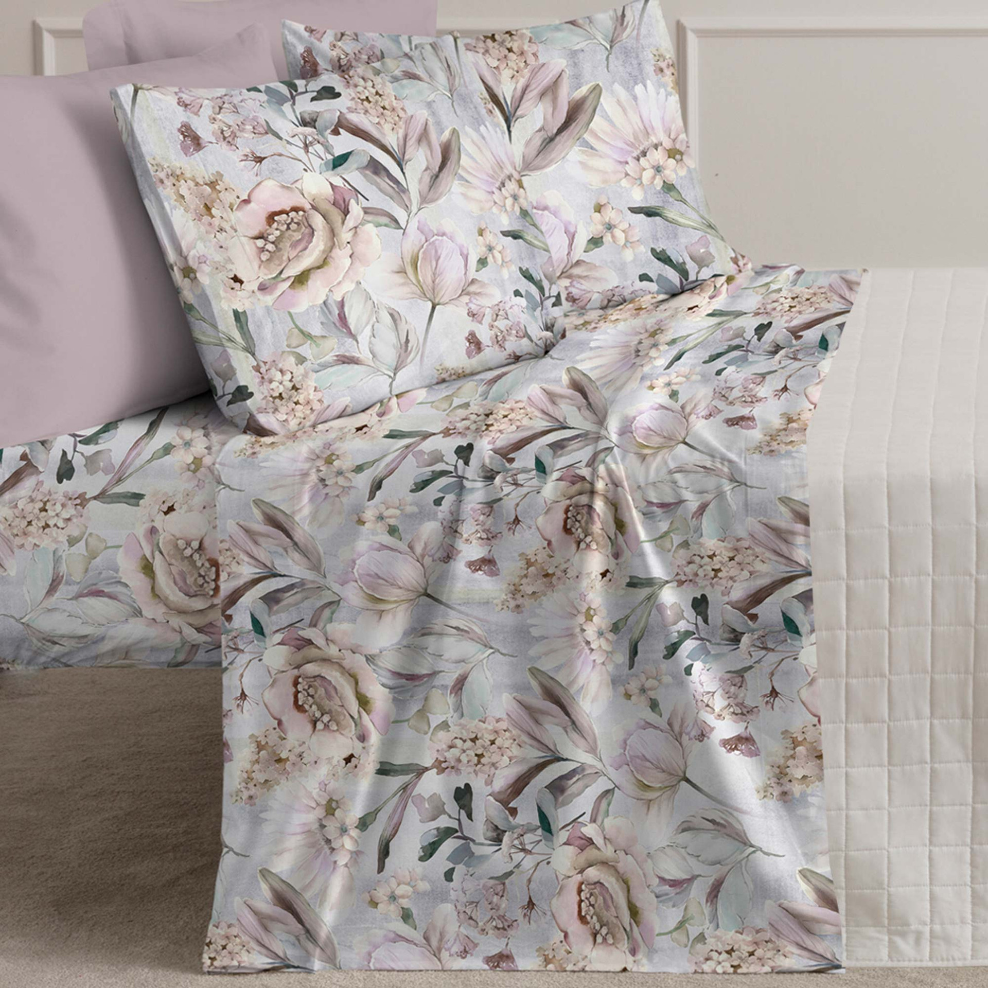 Il completo lenzuolo copriletto Amelie no stiro si distingue per la sua fantasia floreale morbida e luminosa, giocata su delicate sfumature di rosa che regalano alla camera un’atmosfera romantica ma equilibrata. Il disegno, ricco di dettagli botanici ma visivamente leggero, valorizza il letto con naturalezza, adattandosi sia ad ambienti chiari sia a spazi più contemporanei in cui si desidera aggiungere un tocco decorativo senza appesantire l’insieme.