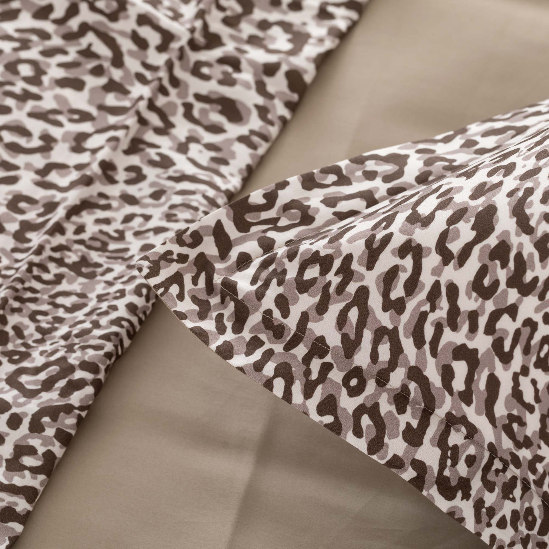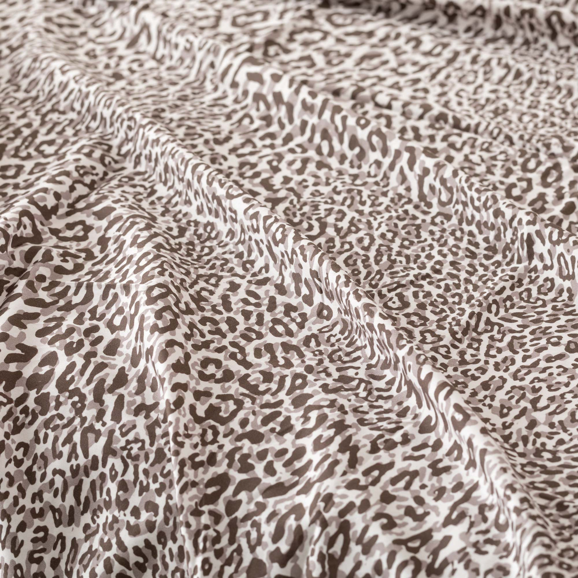 Il completo Dama è pensato per chi desidera portare nel riposo la stessa energia sofisticata delle passerelle. Il sopra, in raso di cotone 300 fili con stampa digitale, rivela un motivo animalier elegante, luminoso e ricco di personalità.