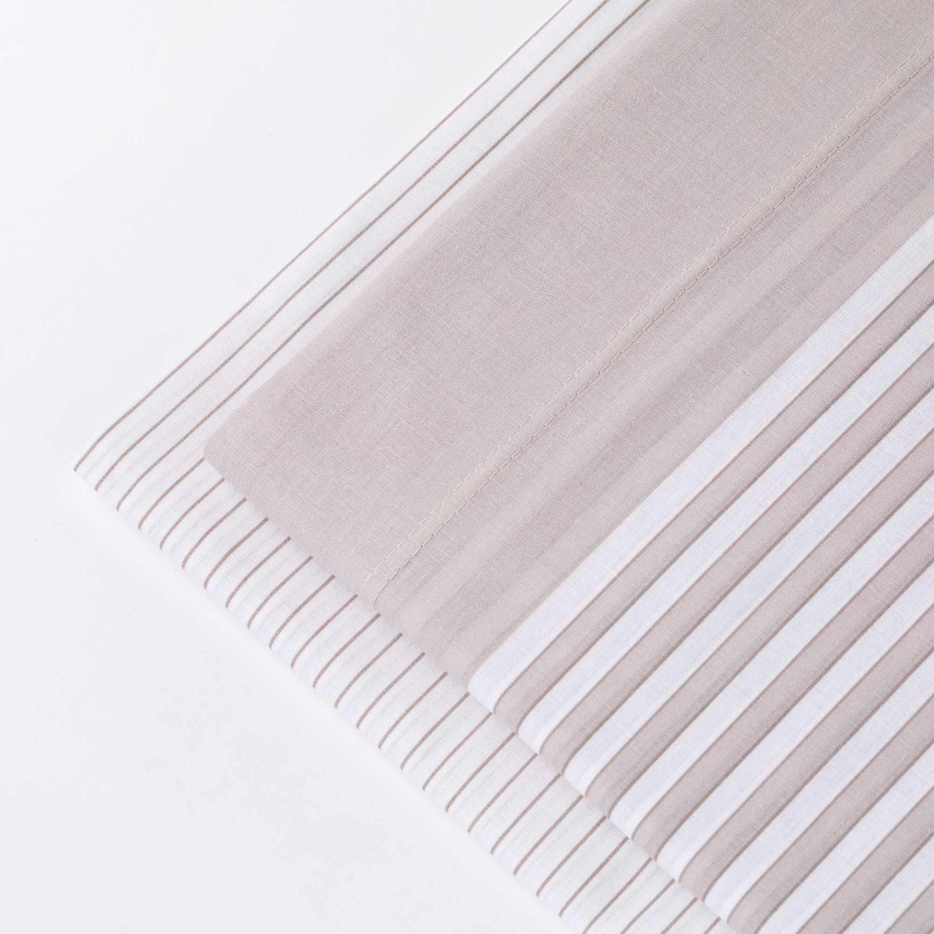 La confezione contiene lenzuolo sopra, lenzuolo sotto con angoli e due federe a sacco nella taglia matrimoniale. 1 federa nella variante singolo e piazza e mezza.