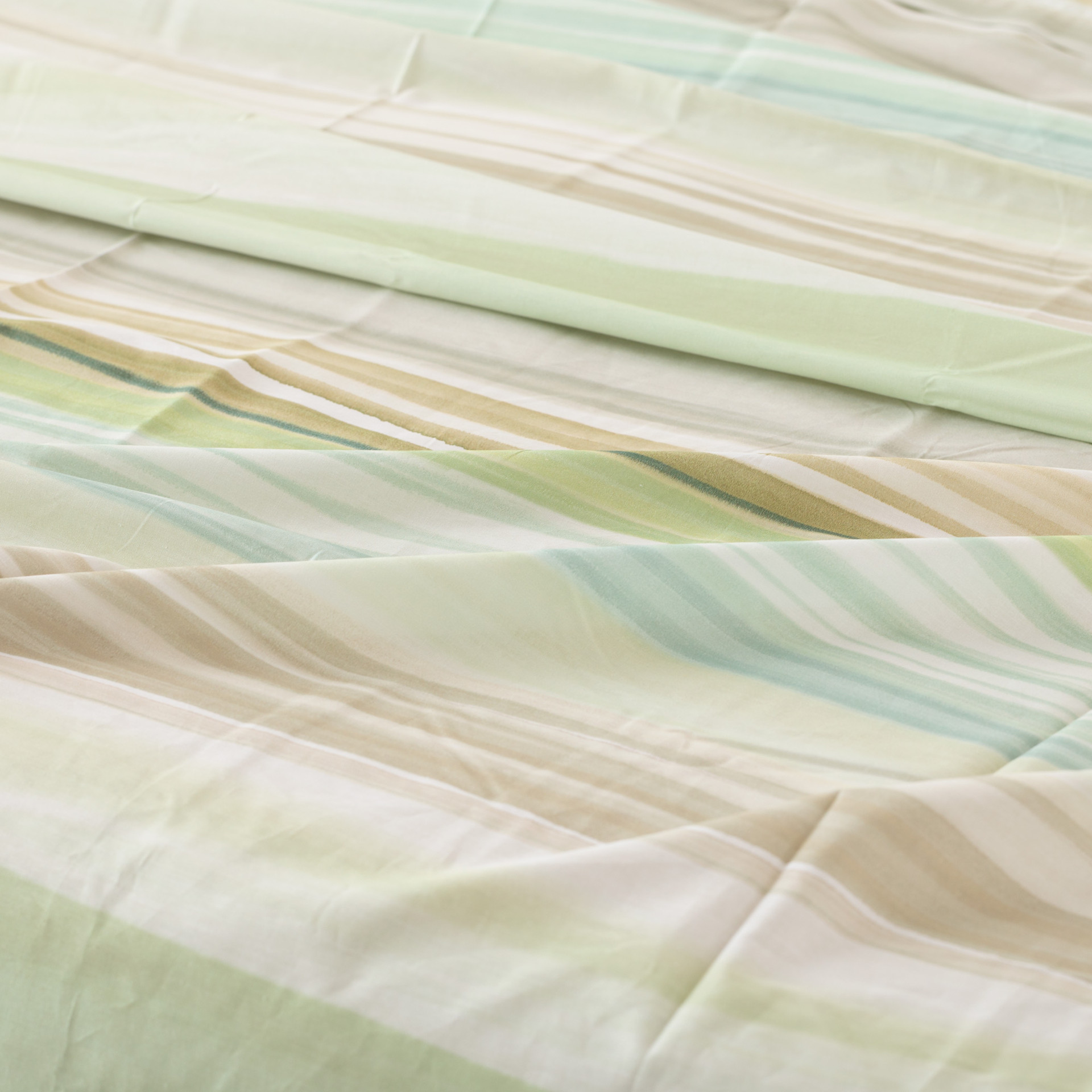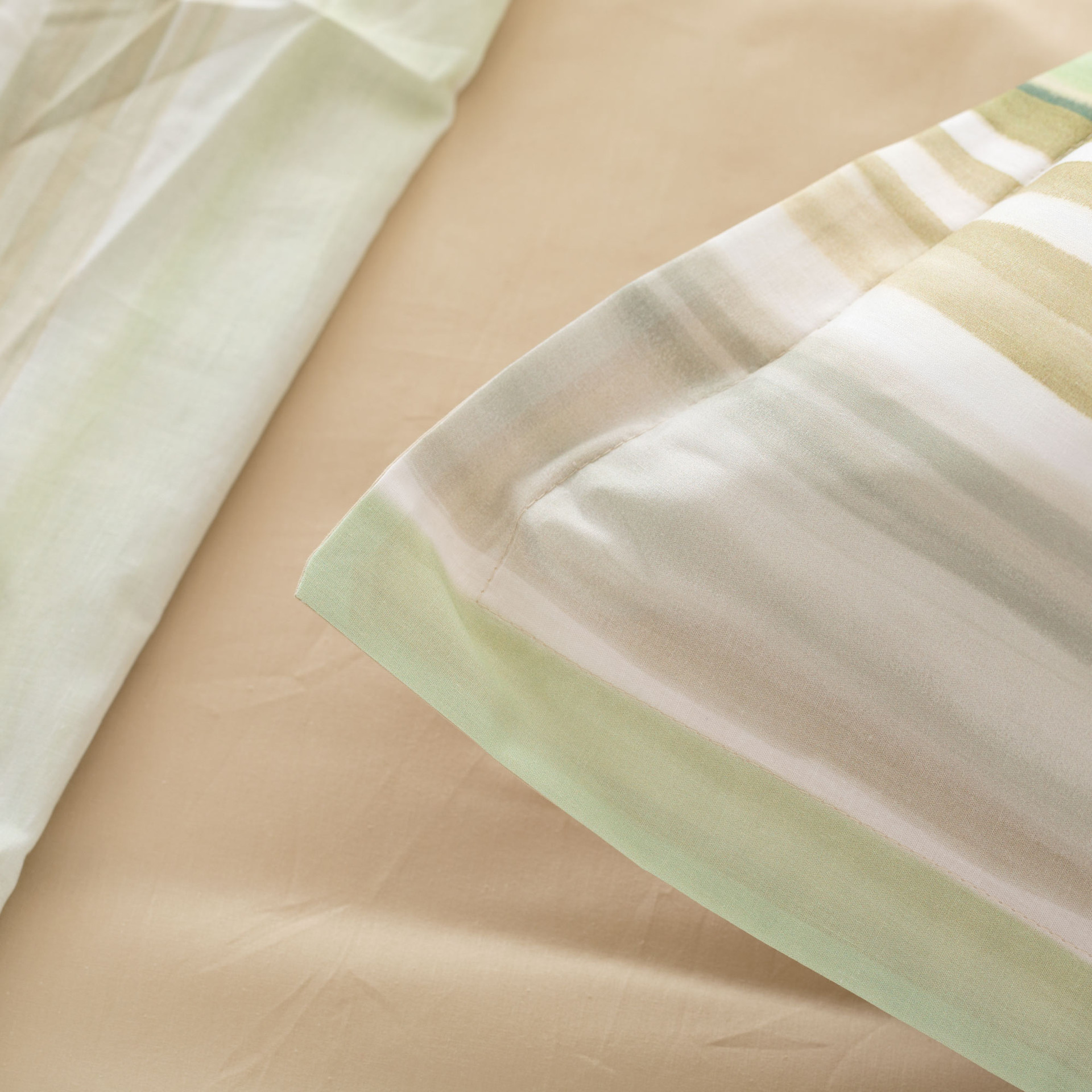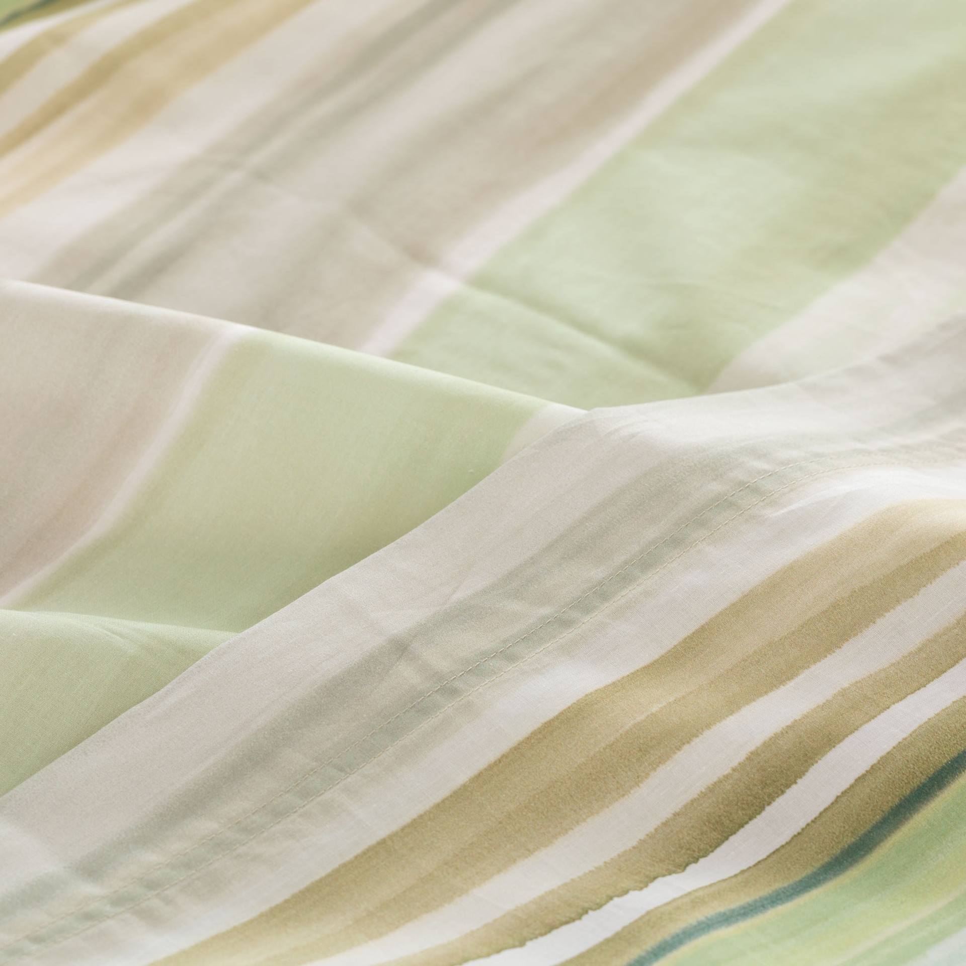 La parure copripiumino Lushana in percalle reinterpreta il motivo a righe in chiave contemporanea, con una stampa digitale su percalle 100% cotone che crea un effetto visivo morbido e armonioso. Le sfumature cromatiche scorrono leggere sul tessuto, portando movimento alla zona notte senza appesantire l’ambiente. Il sotto sacco e il retro delle federe in tinta unita completano il design con equilibrio, mentre la mano fresca e compatta del percalle assicura comfort e traspirabilità.
