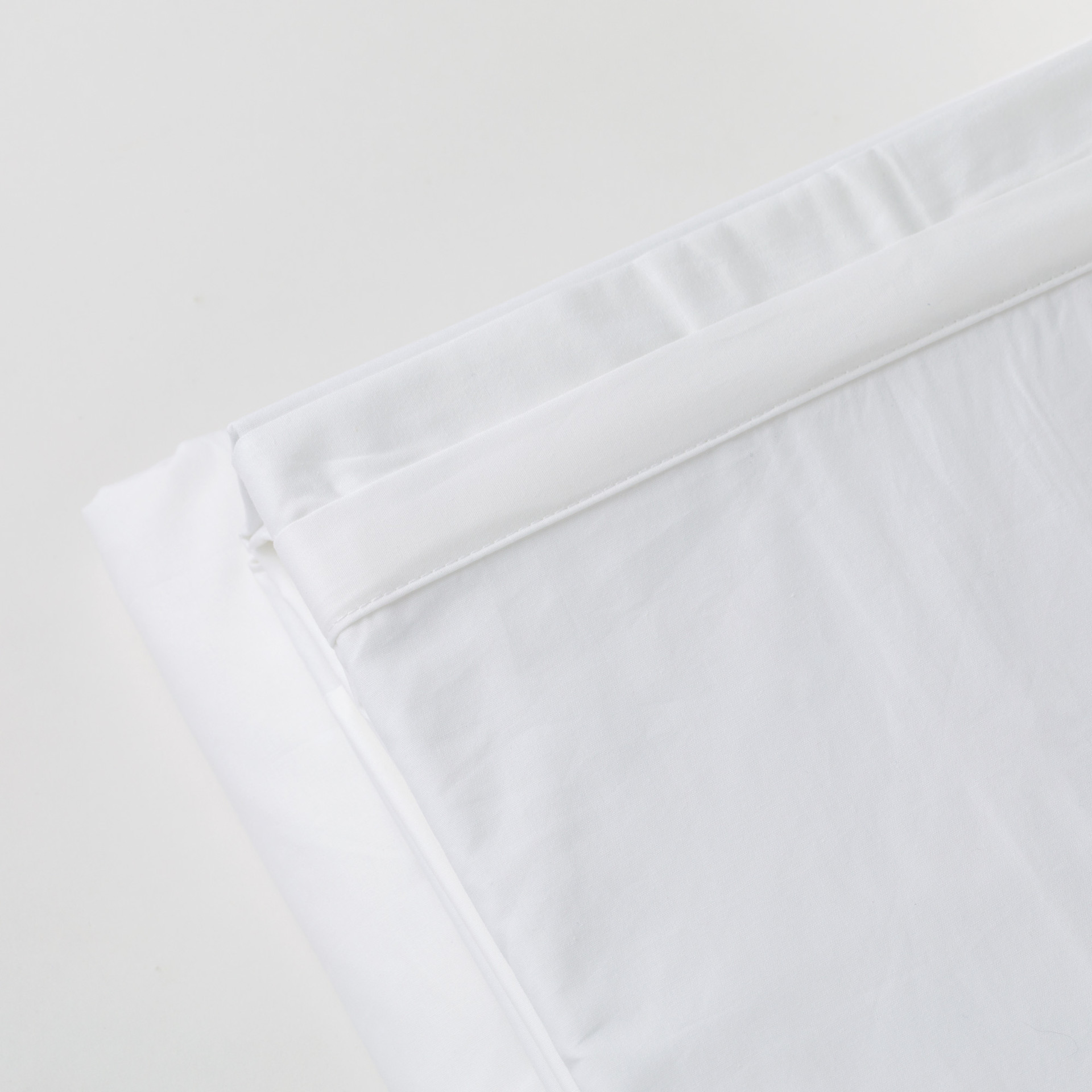Dal punto di vista funzionale, il percalle garantisce resistenza ai lavaggi frequenti e mantiene nel tempo compattezza e stabilità cromatica. La versione matrimoniale comprende lenzuolo sopra 250x290 cm, lenzuolo sotto con angoli 180x200+28 cm e due federe 50x80 cm con tre volants, un elemento che incornicia il cuscino con un profilo morbido e curato. L’altezza degli angoli da 28 cm consente una vestibilità precisa anche su materassi più alti, assicurando ordine e stabilità durante l’uso quotidiano.