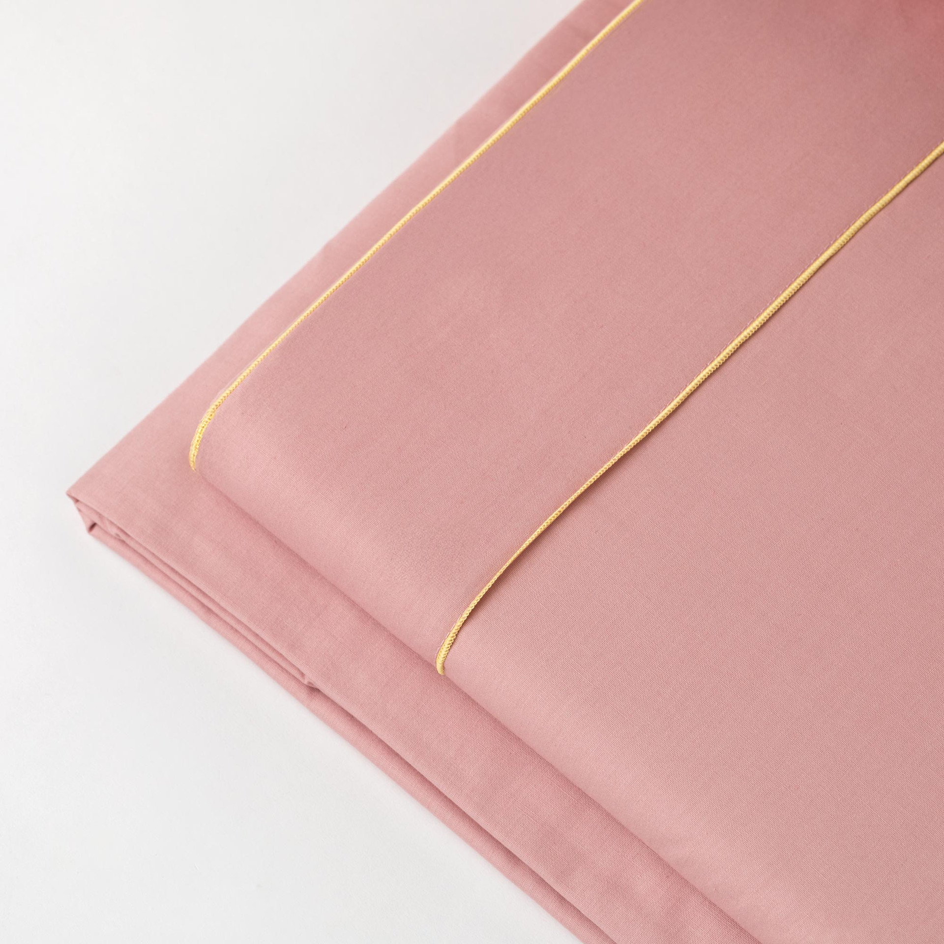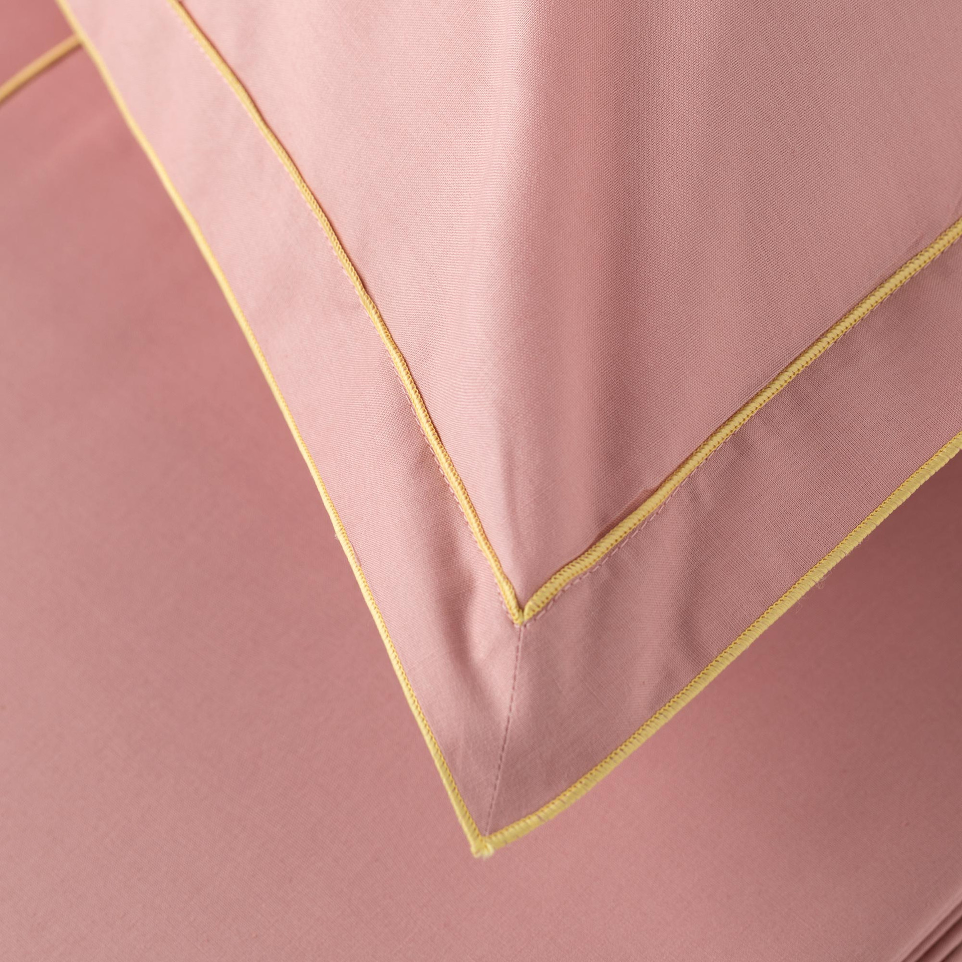 La confezione contiene lenzuolo sopra con doppio bourdon, lenzuolo sotto con angoli e 2 federe a sacco con doppio bourdon