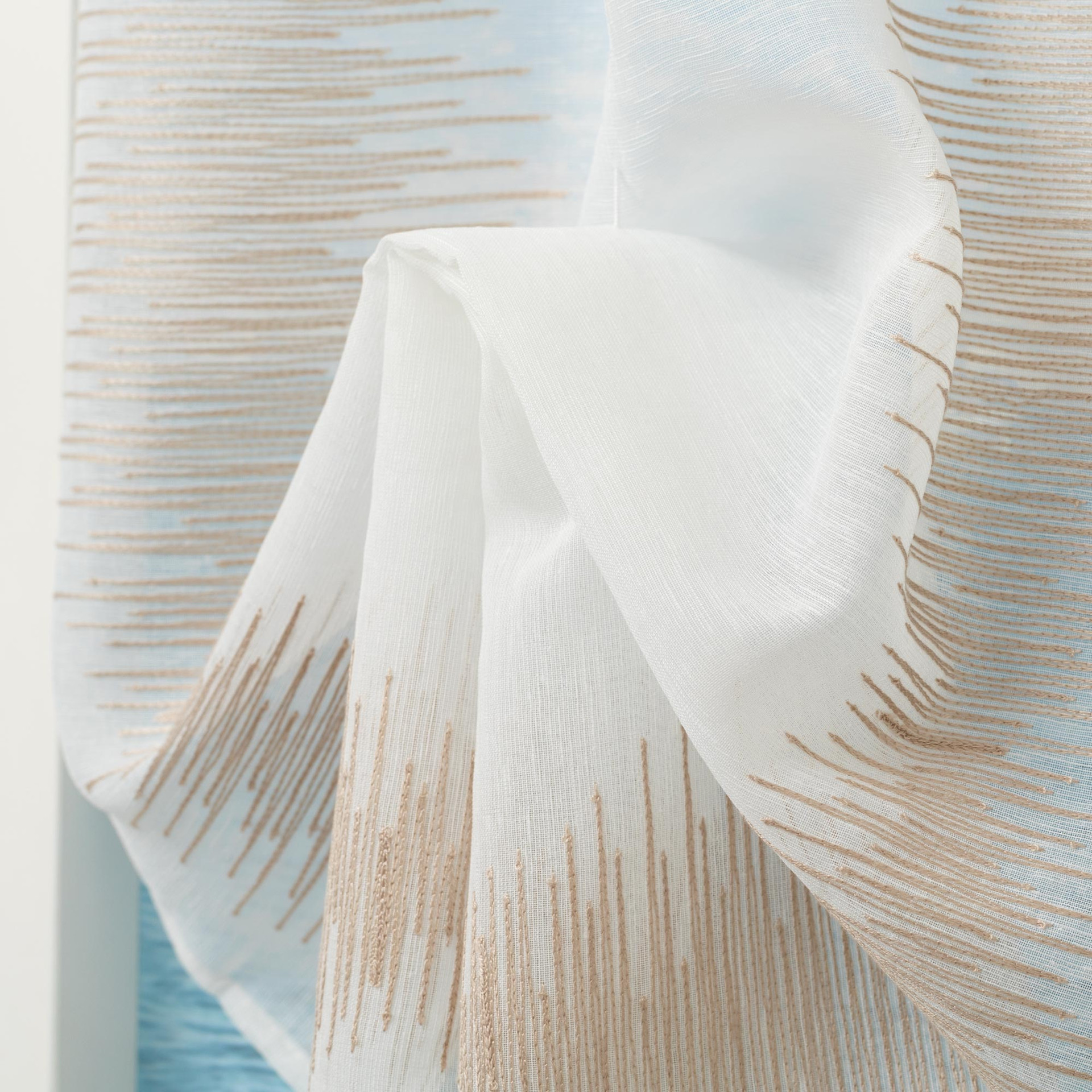La Coppia Tendine Roll Up Lagos è una soluzione tessile progettata per valorizzare gli ambienti con eleganza e funzionalità. Il ricamo verticale crea un effetto visivo raffinato e dinamico, capace di arricchire la finestra con discrezione. Il sistema con tunnel e roll-up centrale consente di regolare facilmente l’altezza della tendina, permettendo di modulare la luce naturale e il livello di privacy in base alle esigenze, rendendole ideali per cucina, soggiorno e ambienti living.