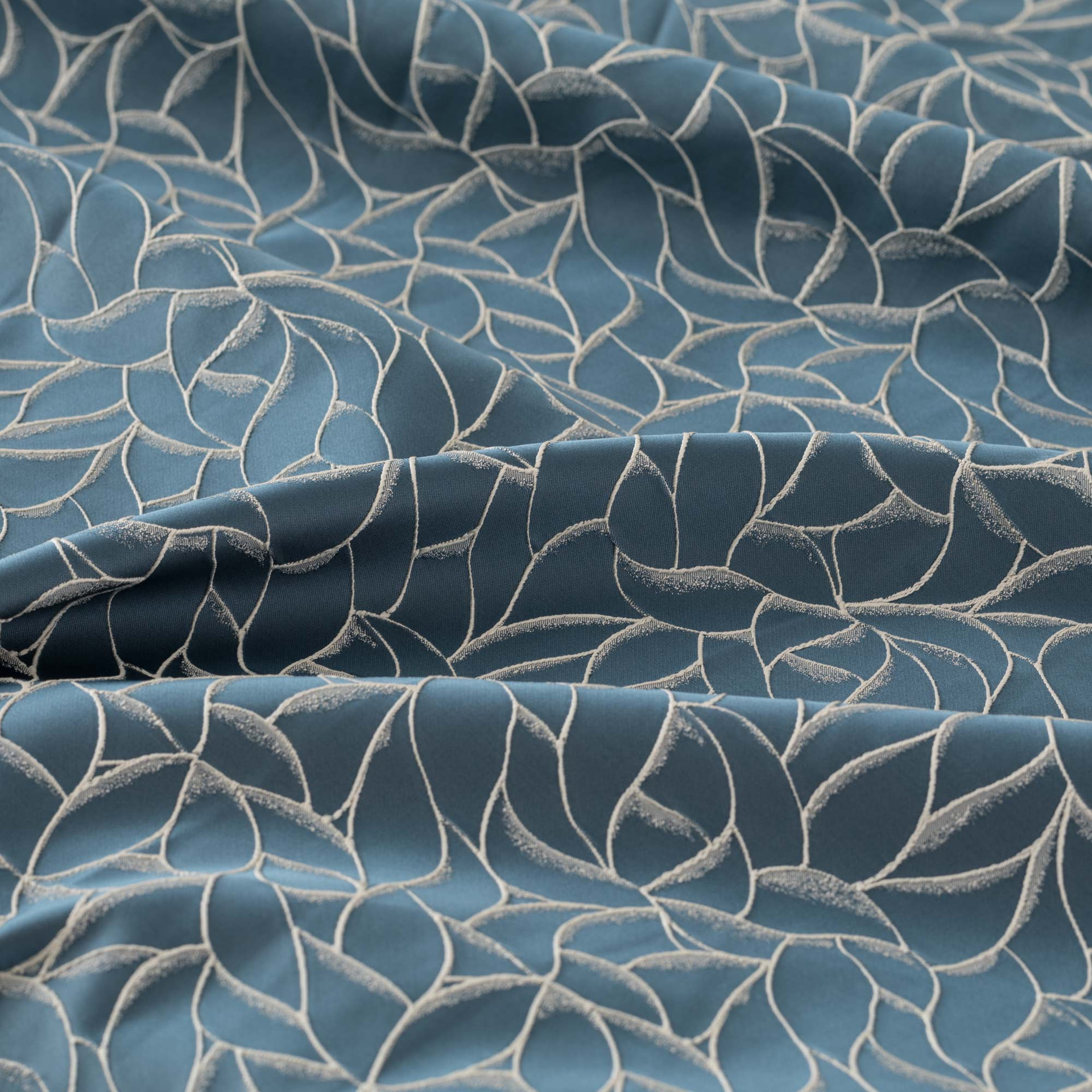 La lavorazione jacquard rende il disegno parte integrante della struttura del tessuto, generando una texture tridimensionale che cattura la luce e restituisce profondità visiva.