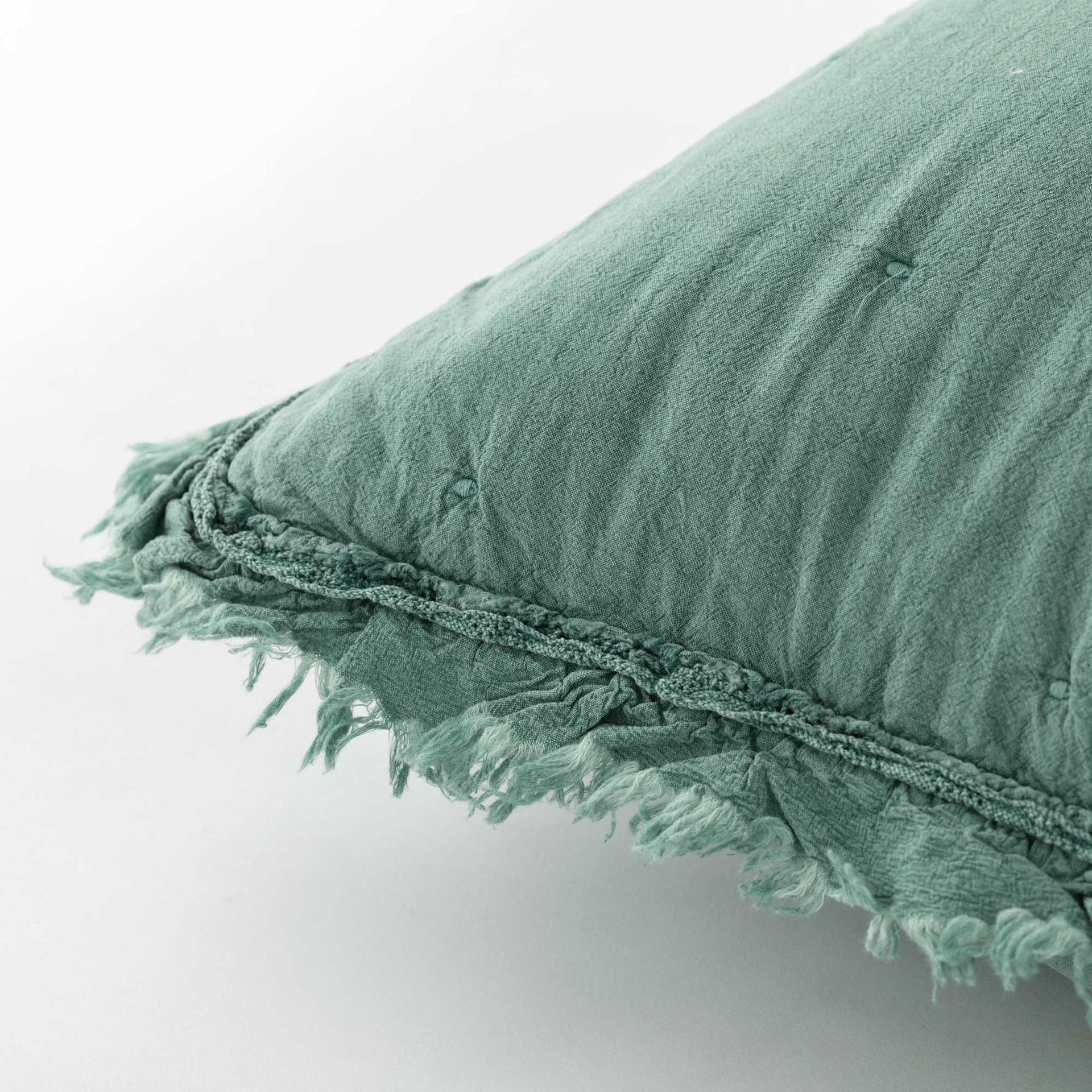 Il cuscino arredo Fernanda stone washed è un complemento tessile dal carattere morbido e materico, pensato per aggiungere profondità e movimento a letti, poltrone e divani. Realizzato in 100% cotone con lavorazione stone washed, conquista per l’aspetto naturalmente vissuto e per le rouches sfrangiate con dettaglio crochet, che donano un’eleganza rilassata perfetta per interni boho chic, mediterranei o contemporanei dal gusto artigianale.