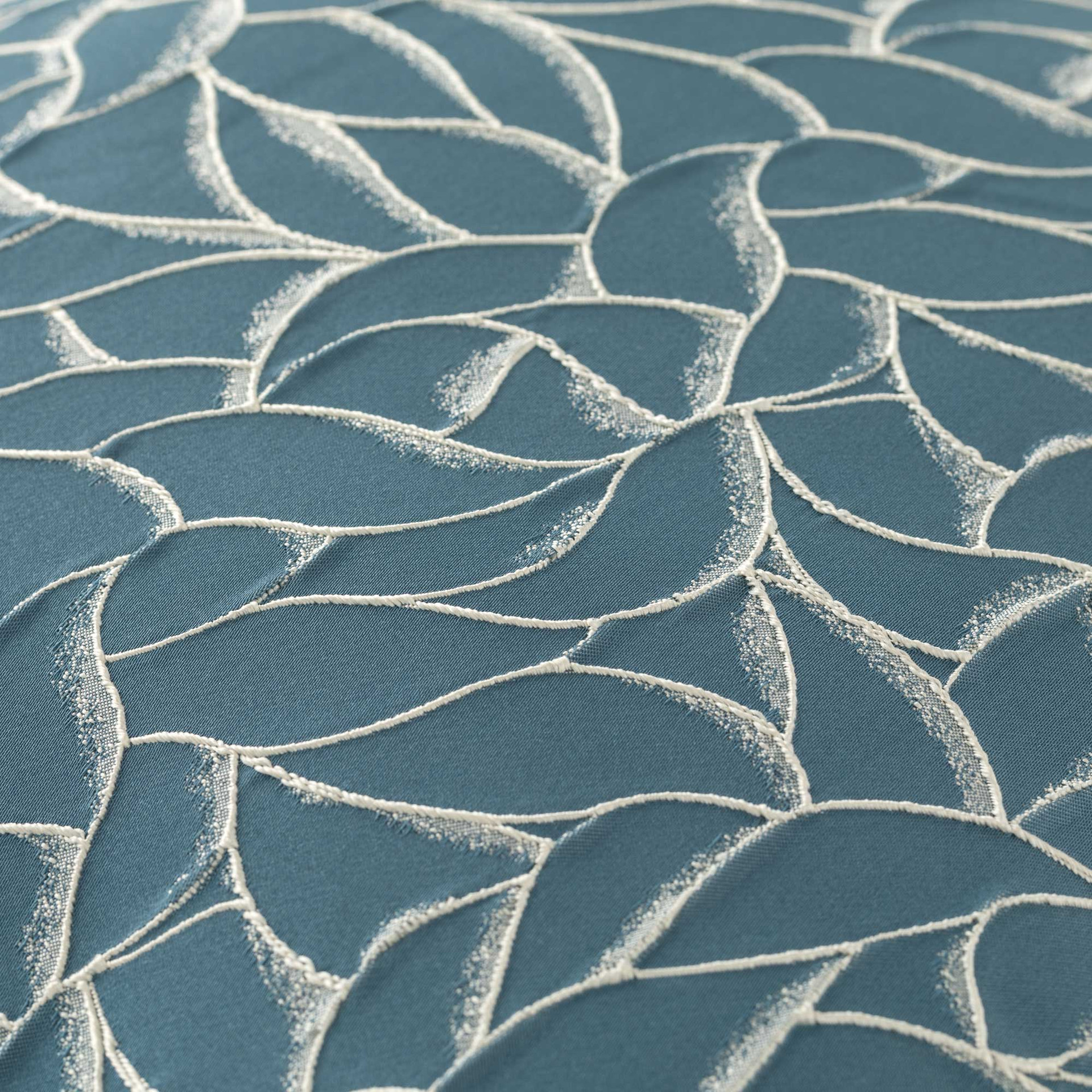 La lavorazione jacquard rende il pattern parte integrante della trama del tessuto, dando vita a una superficie tridimensionale che cattura la luce e restituisce un raffinato gioco di chiaroscuri. Il profilo in tinta lino completa il design con un dettaglio sartoriale sobrio e curato.