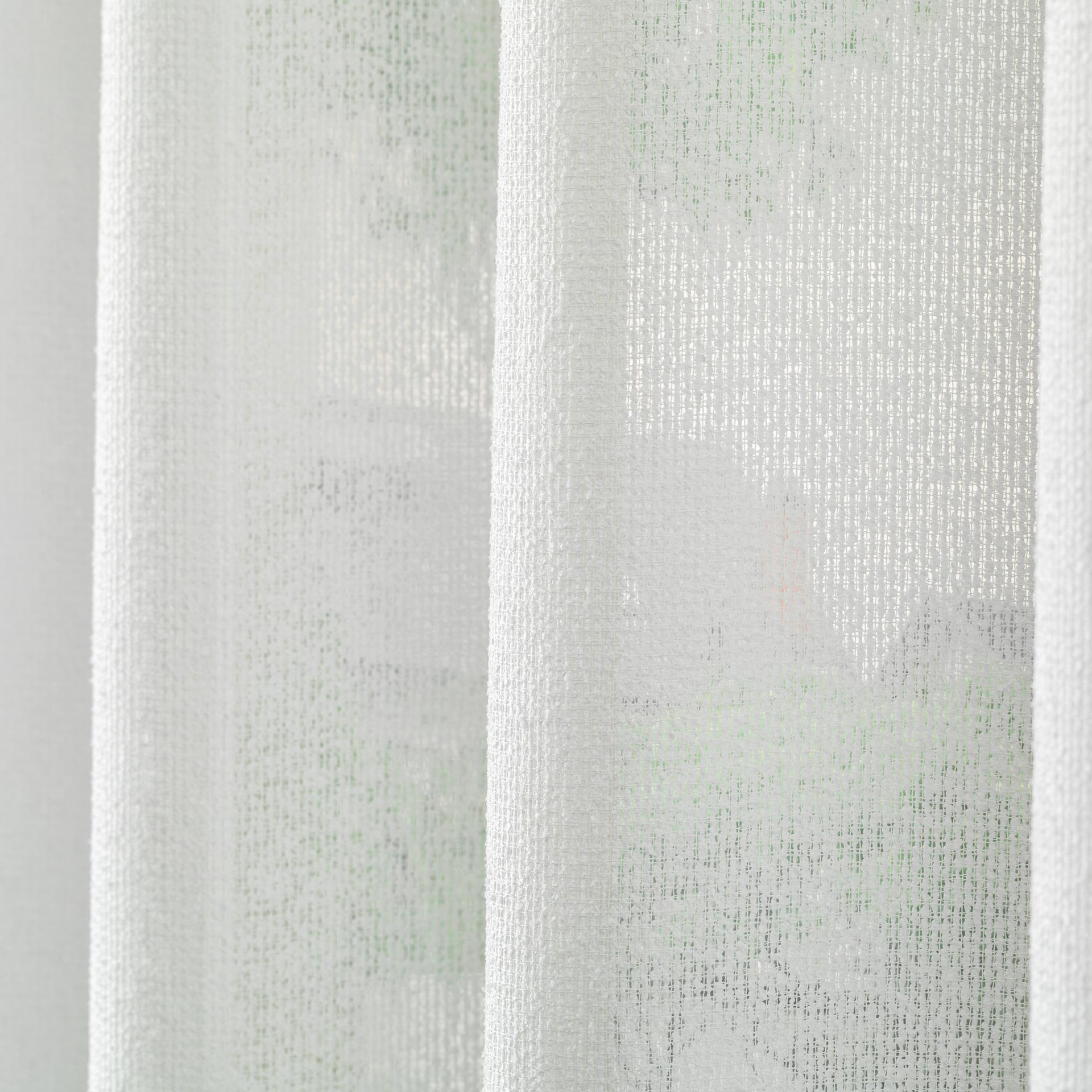 Tenda confezionata con borchie, tessuto semitrasparente. Finitura con piombo.