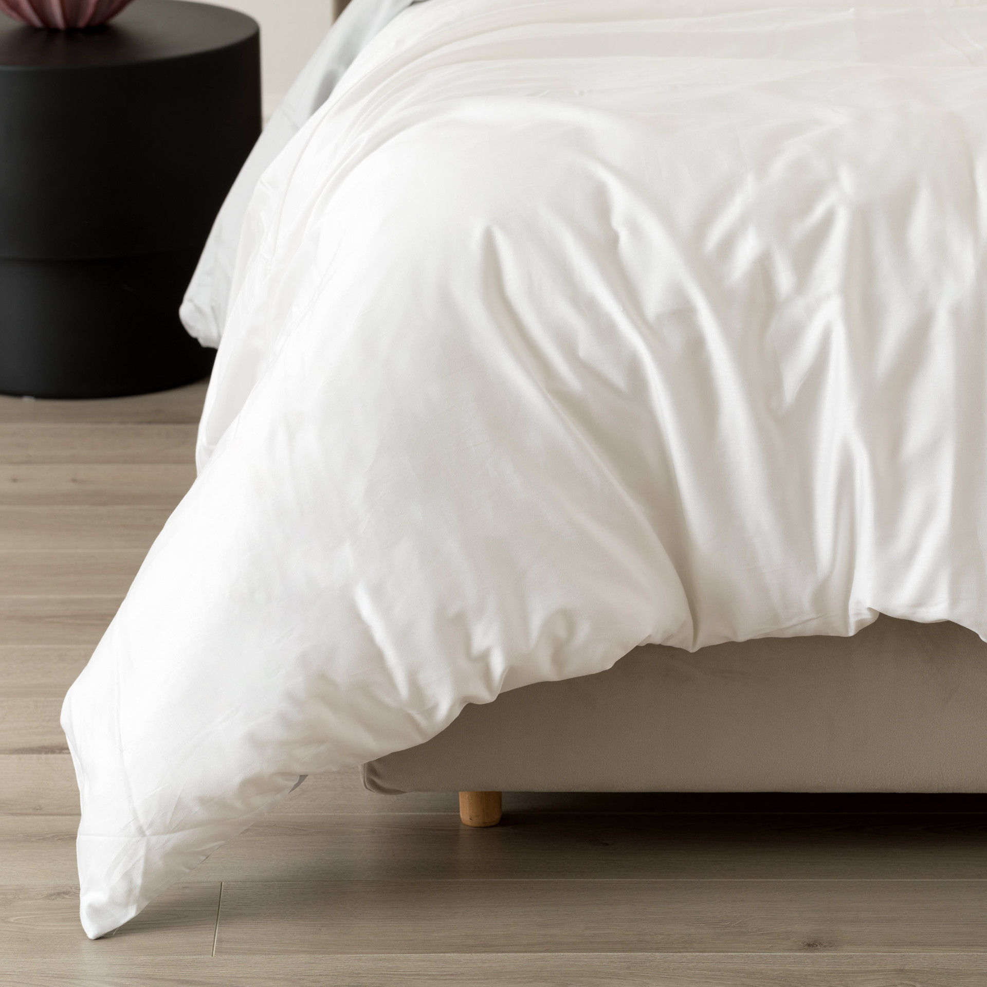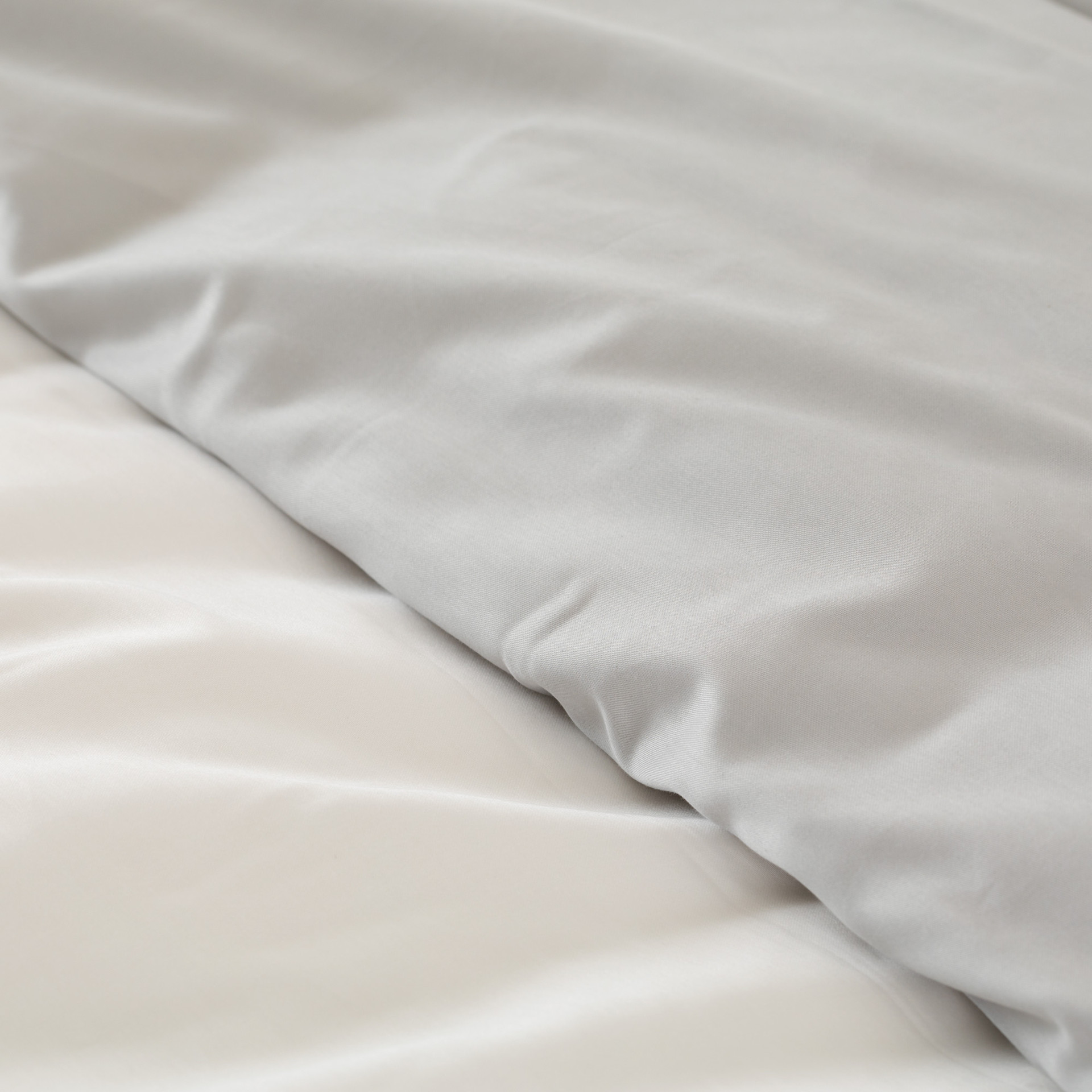 La parure copripiumino Incanto è realizzata in raso 100% cotone tinta unita, una scelta pensata per chi cerca una biancheria letto elegante, luminosa al tatto e naturalmente traspirante. Il tessuto in raso dona una mano liscia e setosa, valorizzando l’aspetto cromatico delle superfici e creando un effetto raffinato che impreziosisce immediatamente l’ambiente notte. Il design double face consente di alternare facilmente i lati del letto, offrendo due interpretazioni cromatiche complementari in un’unica parure.