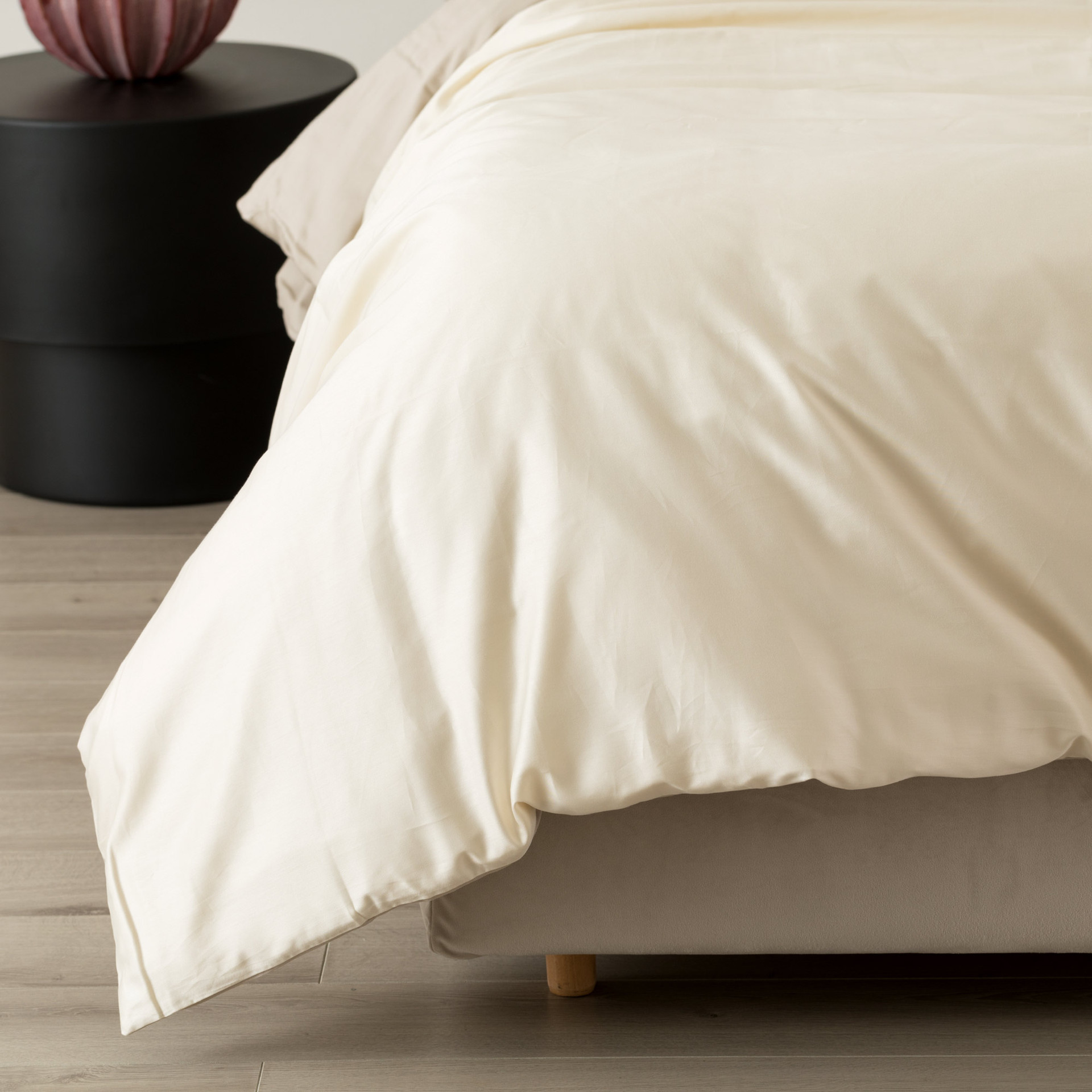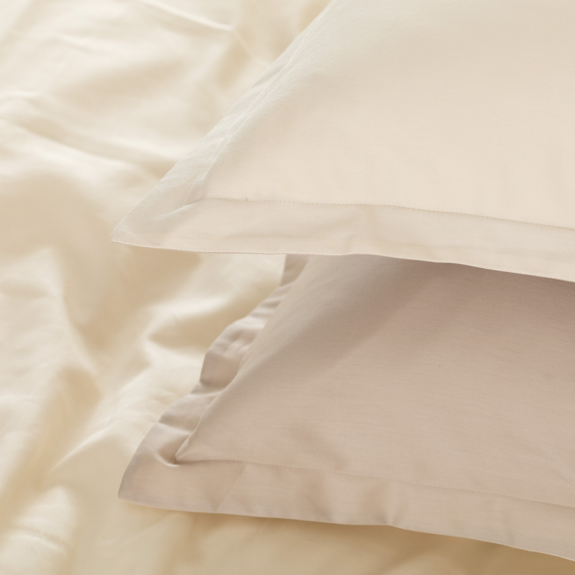 La parure copripiumino Incanto è realizzata in raso 100% cotone tinta unita, una scelta pensata per chi cerca una biancheria letto elegante, luminosa al tatto e naturalmente traspirante. Il tessuto in raso dona una mano liscia e setosa, valorizzando l’aspetto cromatico delle superfici e creando un effetto raffinato che impreziosisce immediatamente l’ambiente notte. Il design double face consente di alternare facilmente i lati del letto, offrendo due interpretazioni cromatiche complementari in un’unica parure.