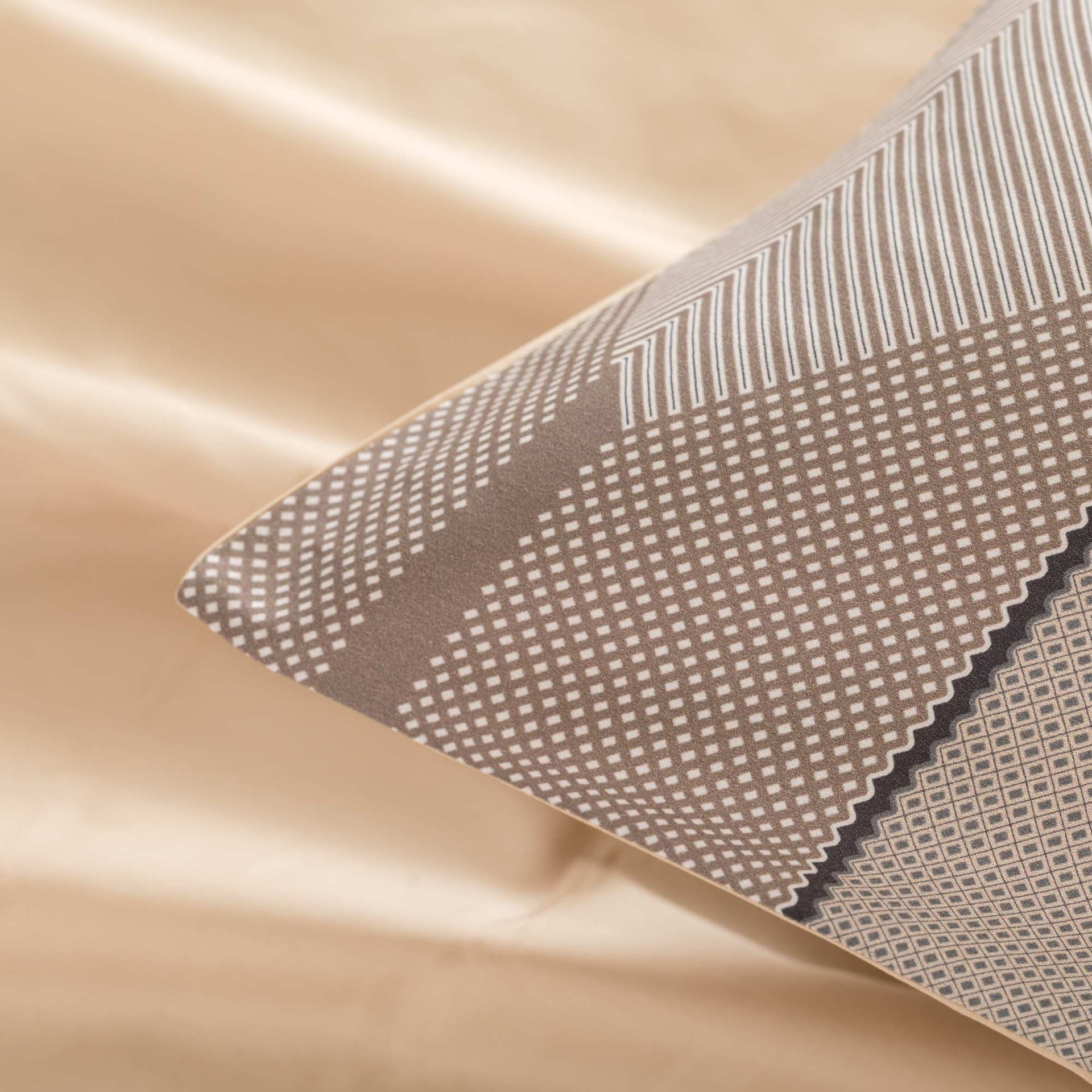 Il raso di cotone 300 fili, con la sua finitura liscia e luminosa, esalta la stampa digitale rendendo ogni sfumatura più intensa e definita. La fantasia non è decorativa in senso classico, ma grafica, pensata per chi ama ambienti ordinati, moderni e visivamente puliti.