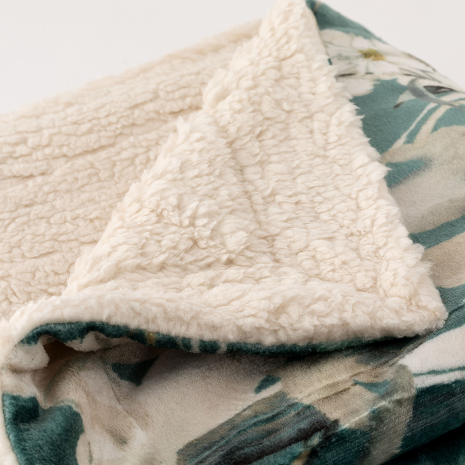 Fronte ecopelliccia stampato 240 gsm, retro in pelliccia effetto lana 200 gsm