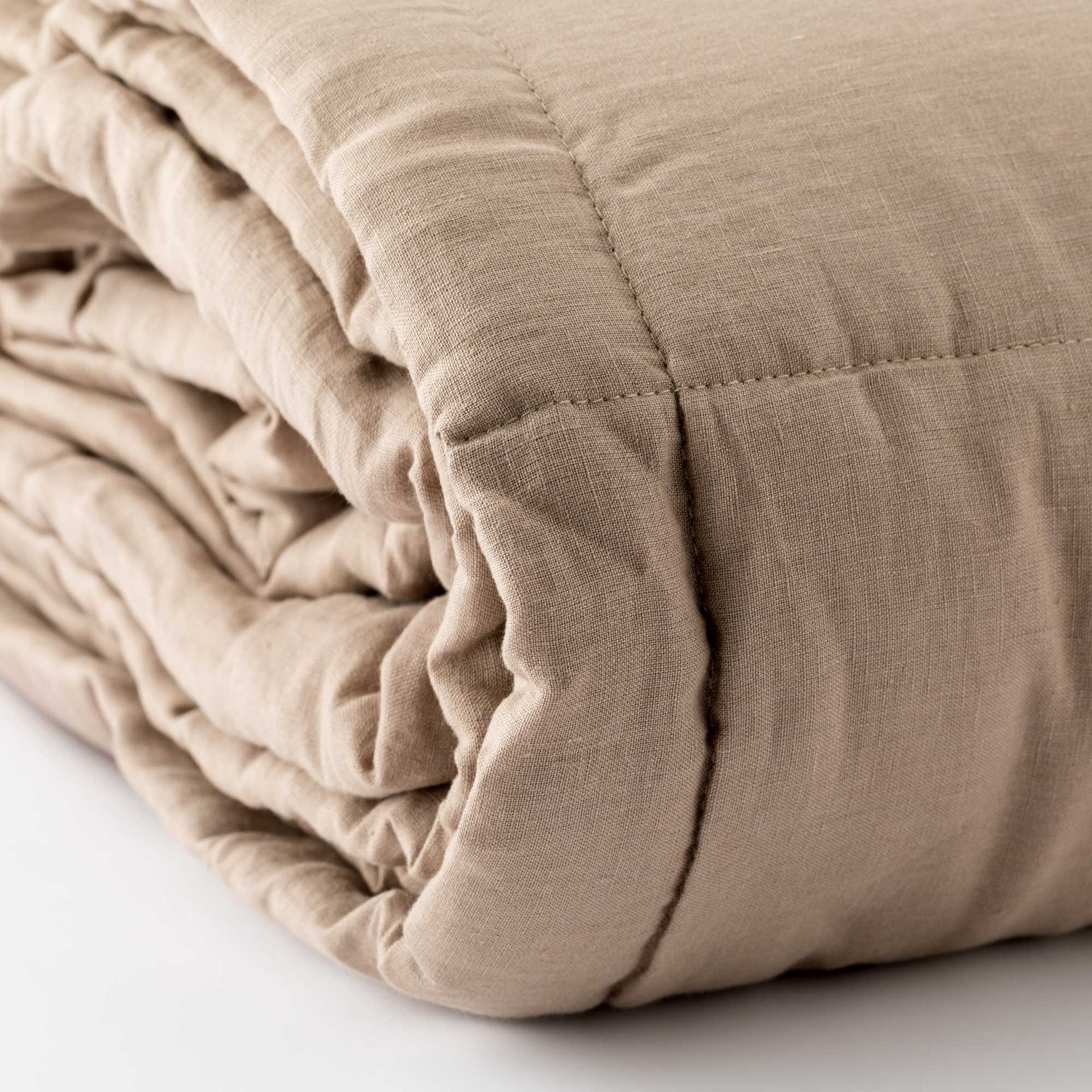 Fronte lino bio 100%, retro percalle di cotone 100%. Imbottitura 120 gr/m2.