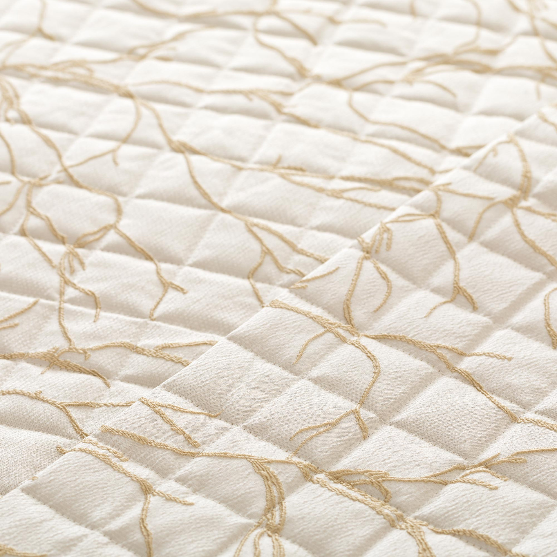 Realizzato con esterno e imbottitura in 100% poliestere da 120 gsm, il quilt Coraline è leggero, pratico e perfetto per la mezza stagione. La trapuntatura a quadri da 5 cm valorizza la superficie del tessuto e garantisce una distribuzione uniforme dell’imbottitura, mentre gli angoli tondi assicurano una caduta morbida ed elegante sul letto.