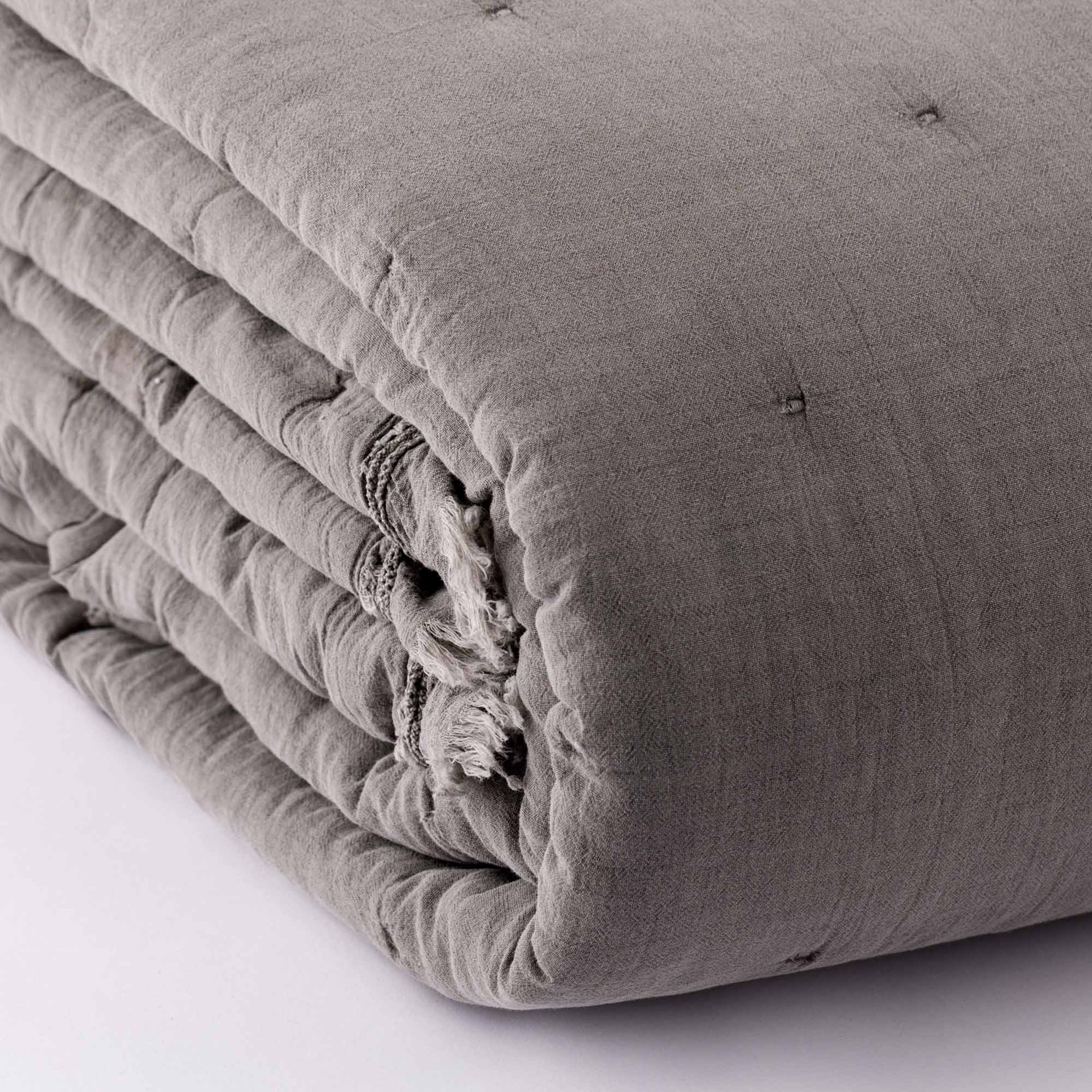 Tessuto 100% cotone stone whased, imbottitura 100gr. Finitura con rouches sfrangiata e crochet