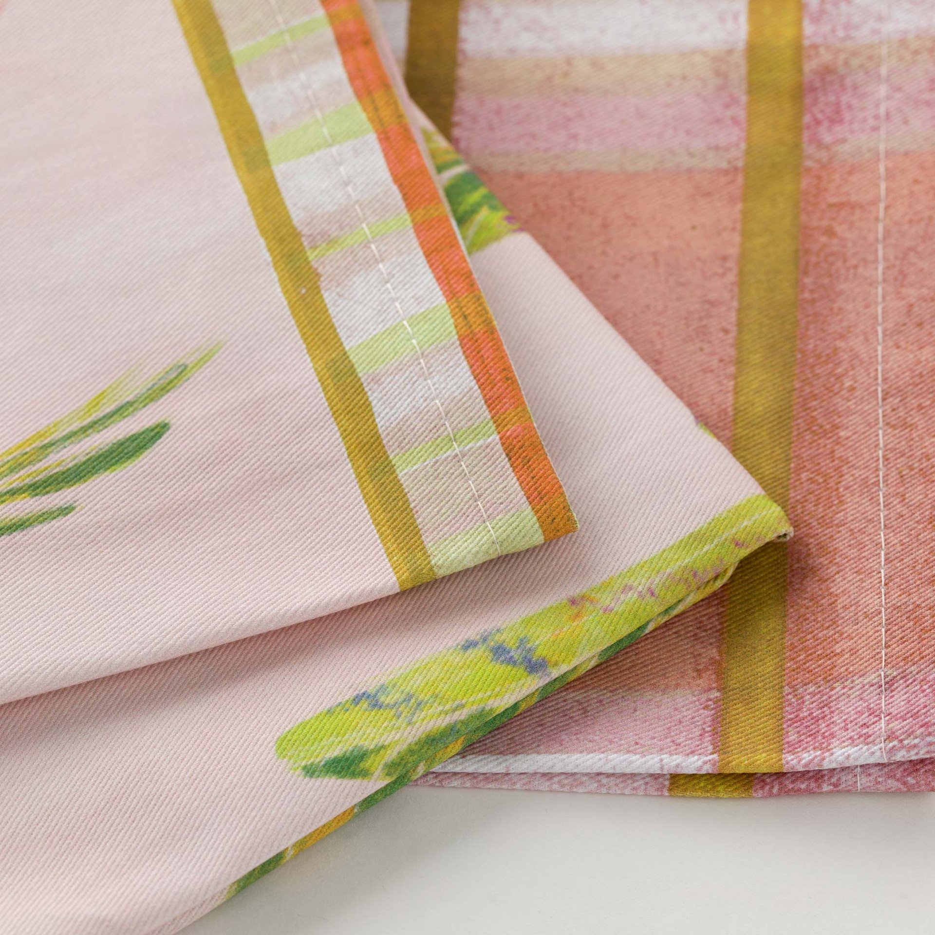 Il cotone twill antimacchia è la scelta tecnica più logica per un canovaccio da cucina ad uso intensivo: la trama compatta asciuga con efficacia senza rilasciare pelucchi, il finishing protettivo riduce l'assorbimento permanente di grassi e coloranti, e la struttura del tessuto regge bene le alte temperature del lavaggio necessarie per igienizzare un canovaccio usato a contatto con alimenti. La stampa digitale garantisce che le illustrazioni botaniche rimangano nitide e vivaci anche dopo cicli ripetuti di utilizzo e lavaggio, senza lo sbiadimento progressivo che caratterizza le stampe a sublimazione su cotone non trattato.