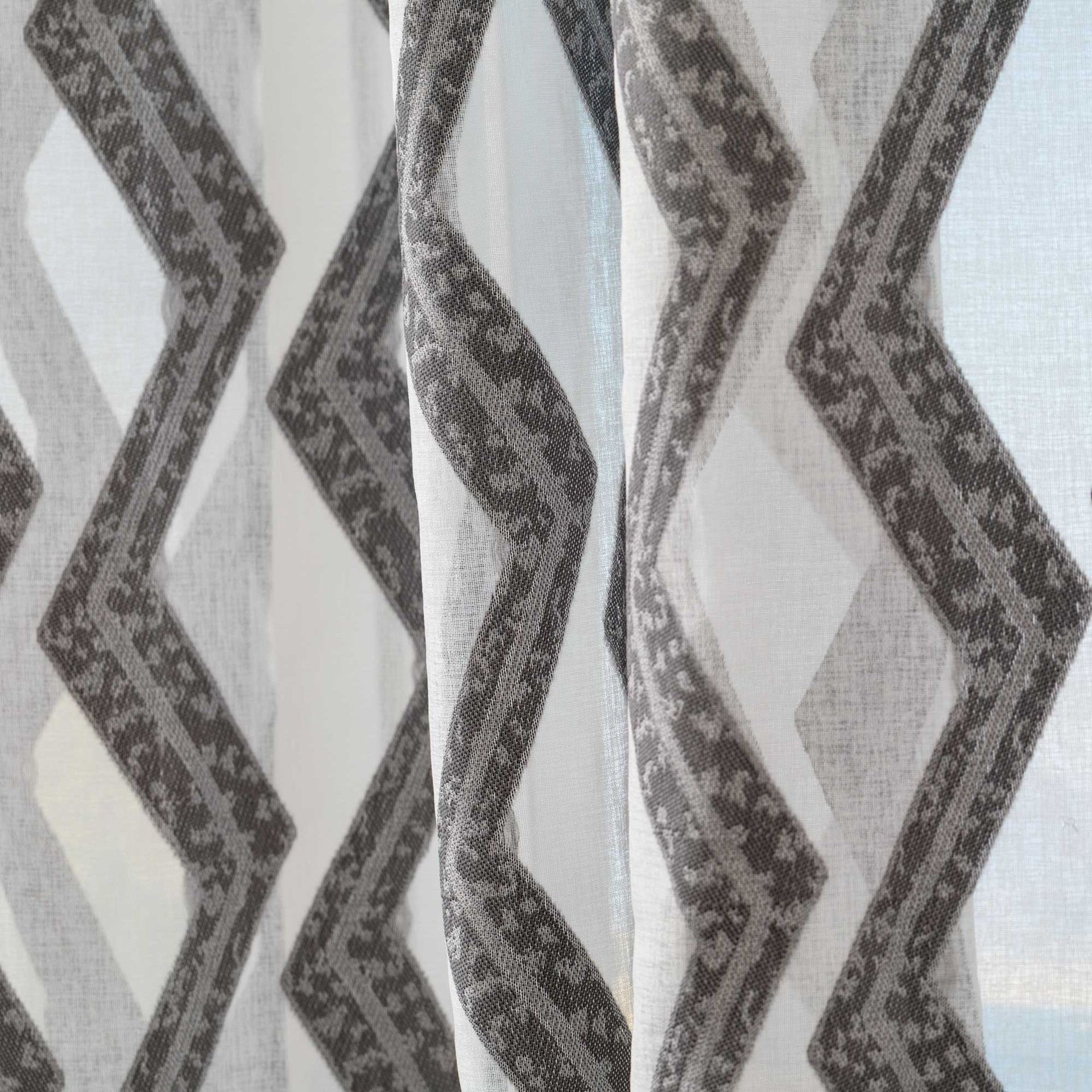 Tenda confezionata con borchie, tessuto semitrasparente. Finitura con piombo.