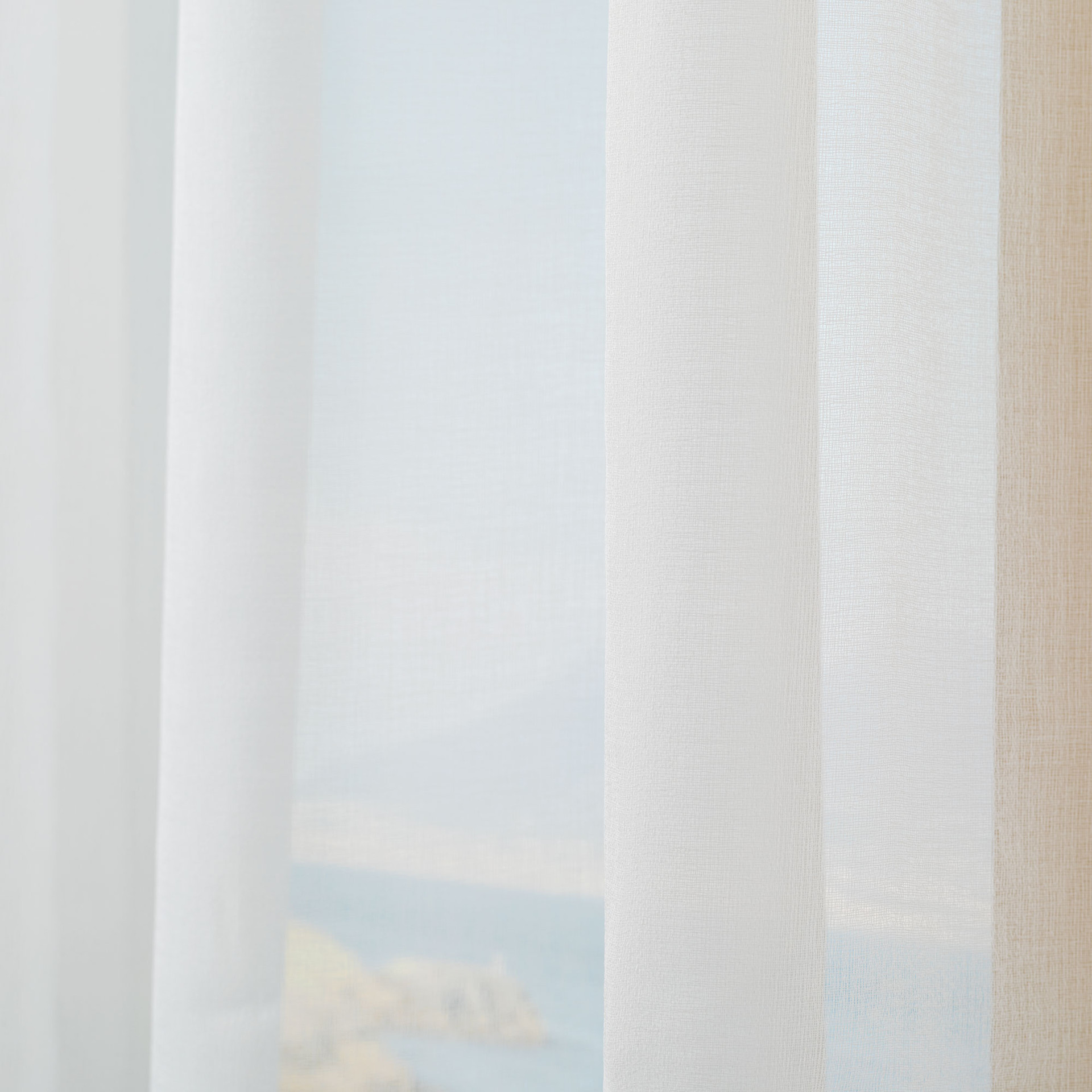 Tenda confezionata con borchie, semi-trasparente, dimensioni 140x280.
