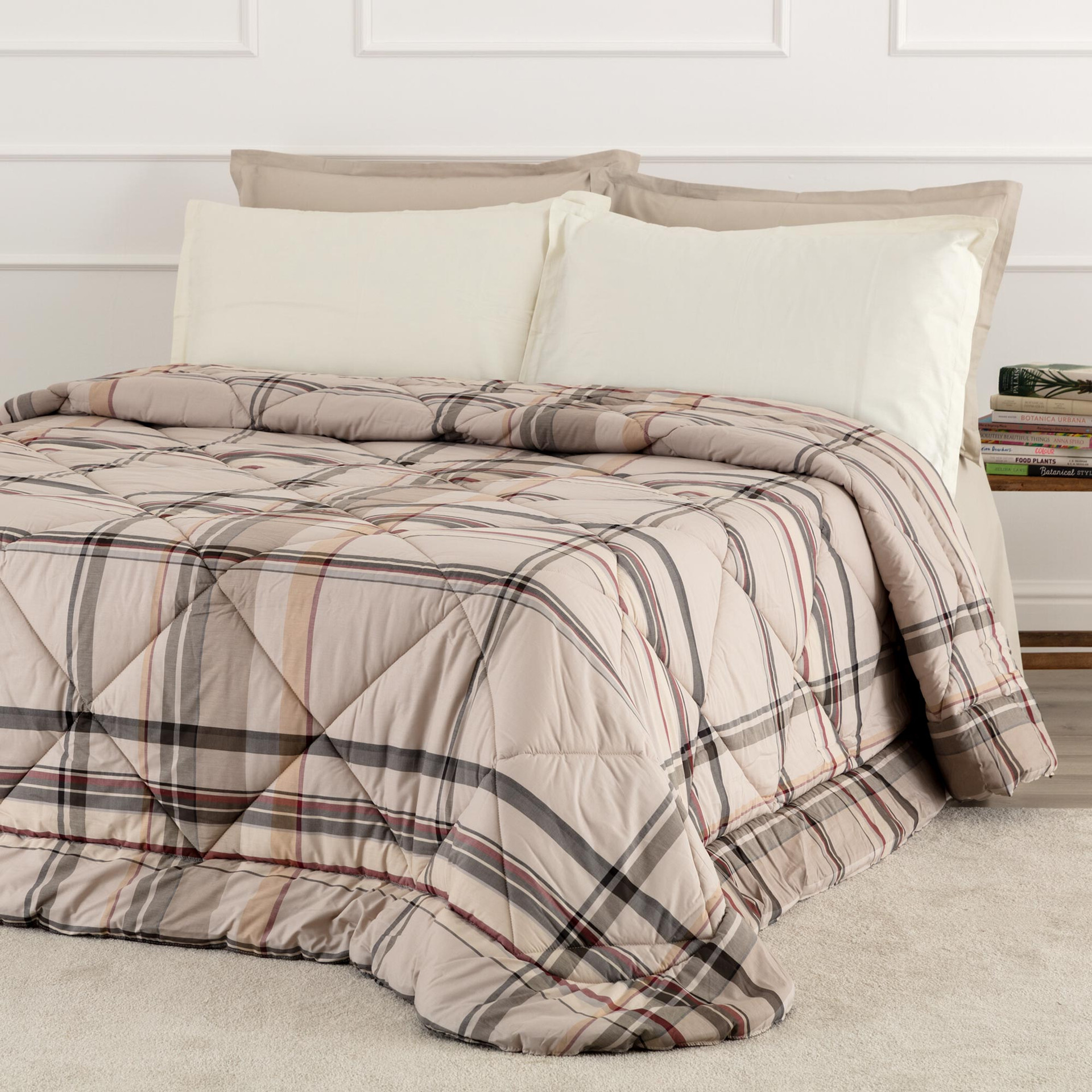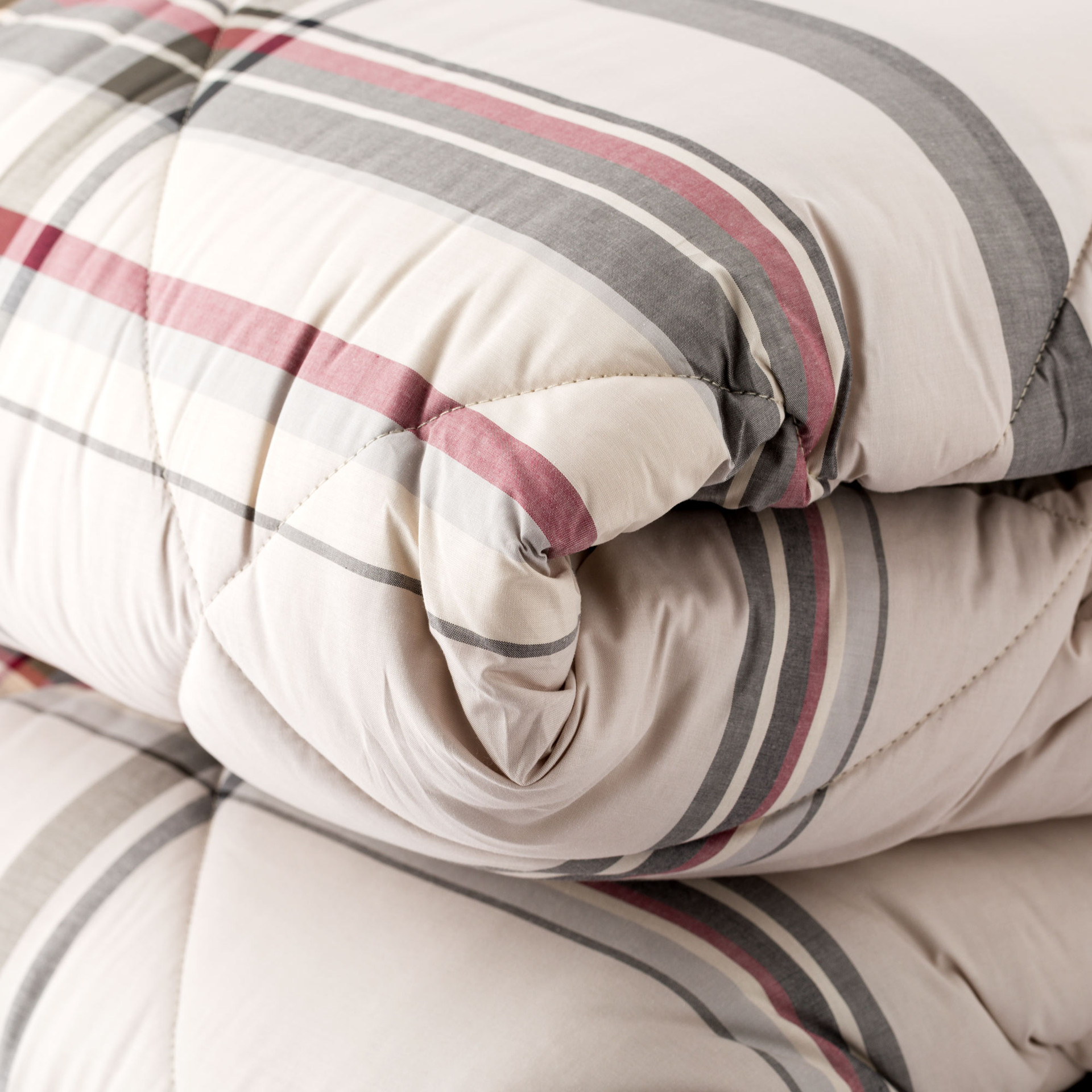 Trapunta double, fronte tinto in filo percalle 100%, retro cotone madapolam in tinta unita. Imbottitura 330 gr