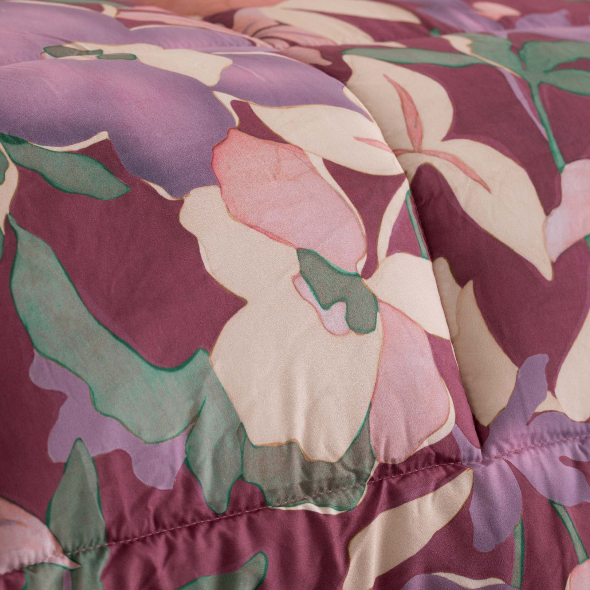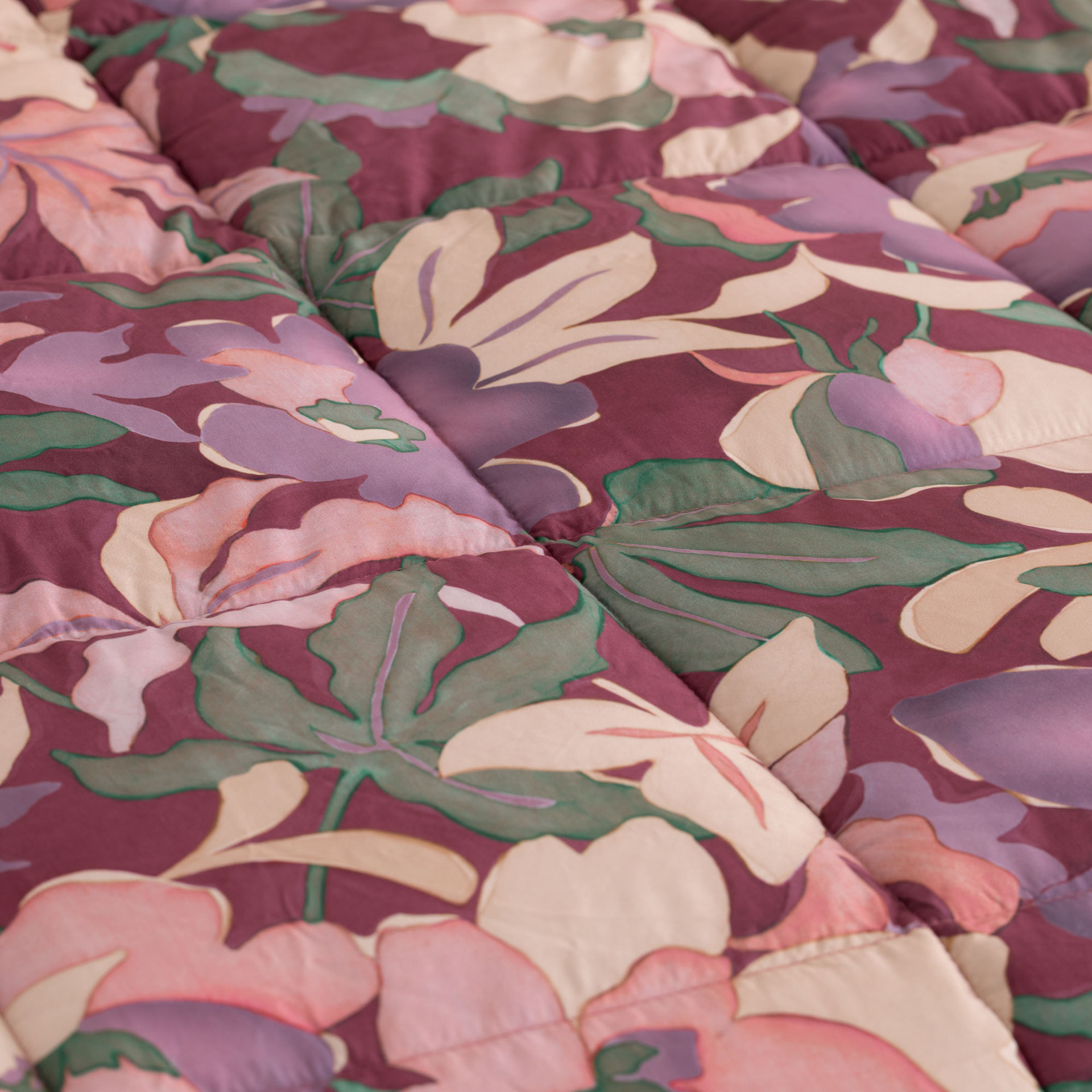 La Trapunta Diana è la scelta perfetta per vestire la camera da letto con eleganza e comfort durante la stagione invernale. La raffinata fantasia floreale dona un tocco romantico e armonioso all’ambiente, mentre le tonalità calde ambra e melograno valorizzano la zona notte con colori intensi e avvolgenti.