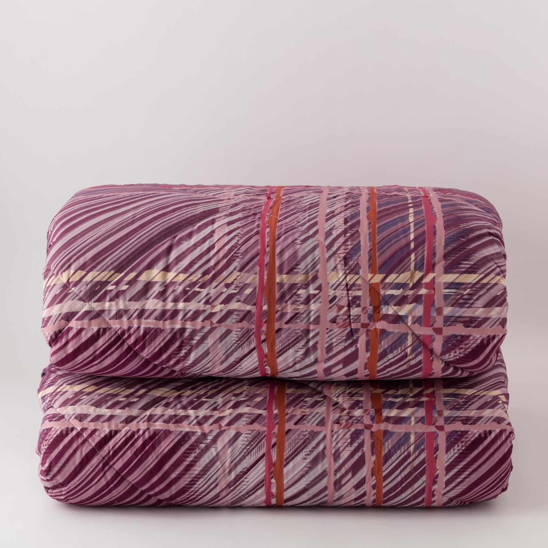 Con il suo disegno geometrico a rombi, la trapunta percalle Yuta si distingue per l’eleganza sottile di un tartan reinterpretato in chiave contemporanea. Le linee tratteggiate e i contrasti grafici donano al tessuto un dinamismo sofisticato, capace di trasformare ogni camera da letto in uno spazio accogliente e ricercato. La lavorazione con stampa digitale su percalle 100% cotone garantisce una resa cromatica nitida e durevole, mentre l’imbottitura da 350 GSM in poliestere assicura il giusto equilibrio tra calore e leggerezza.