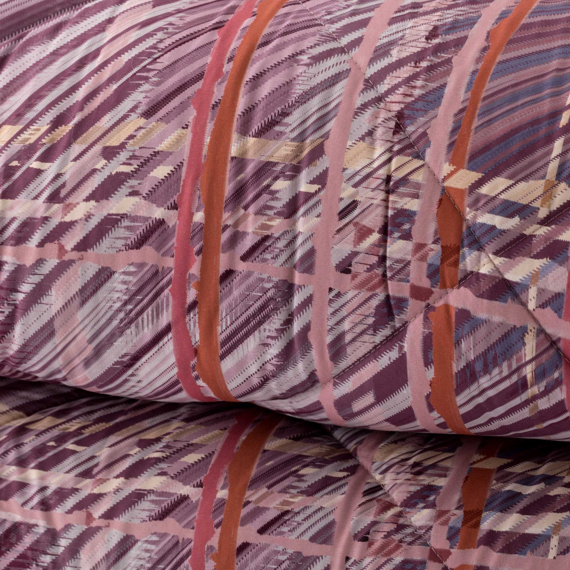 Le varianti Melograno, nelle tonalità intense del bordeaux e del rosa antico, e Carta da Zucchero, che fonde azzurri polverosi e avorio in un gioco delicato di sfumature, permettono di scegliere tra due stili diversi ma ugualmente raffinati. Perfetta per chi ama la biancheria da letto che unisce design e comfort, Yuta è la scelta ideale per un ambiente curato fin nei minimi dettagli.