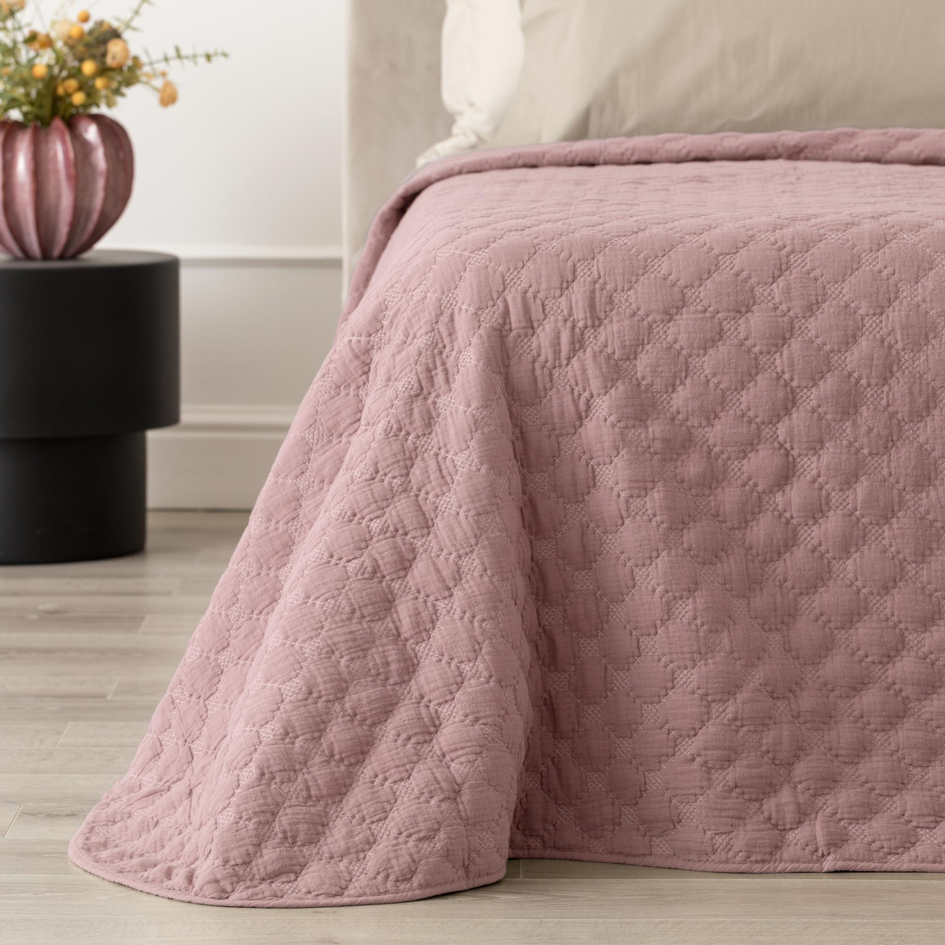 Il quilt Rombus in mussola di cotone si caratterizza per una lavorazione ricamata a motivo geometrico che dona profondità e movimento alla superficie rifinita. La texture morbida della mussola garment washed esalta l’effetto naturale del tessuto, creando un copriletto dall’estetica contemporanea ma accogliente. Disponibile nelle tonalità bianco, tortora, malva, denim e oliva, si inserisce con facilità in ambienti moderni, boho o dal gusto essenziale.
