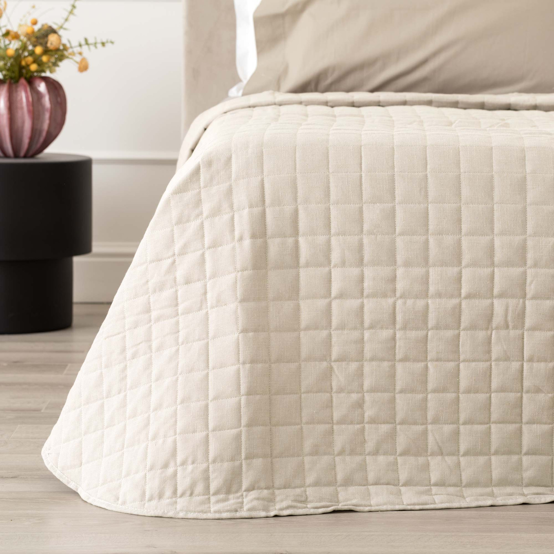 Disponibile nelle varianti Bianco, Lino e Tortora, il Quilt Blom si presta a interpretazioni d’arredo diverse ma sempre equilibrate. Il Bianco illumina e valorizza ambienti essenziali, il Lino esalta la componente naturale del tessuto con una tonalità calda e materica, mentre il Tortora aggiunge profondità neutra e contemporanea. Una scelta indicata per chi desidera un trapuntino matrimoniale leggero con un’estetica sobria e una struttura pensata per durare nel tempo.
