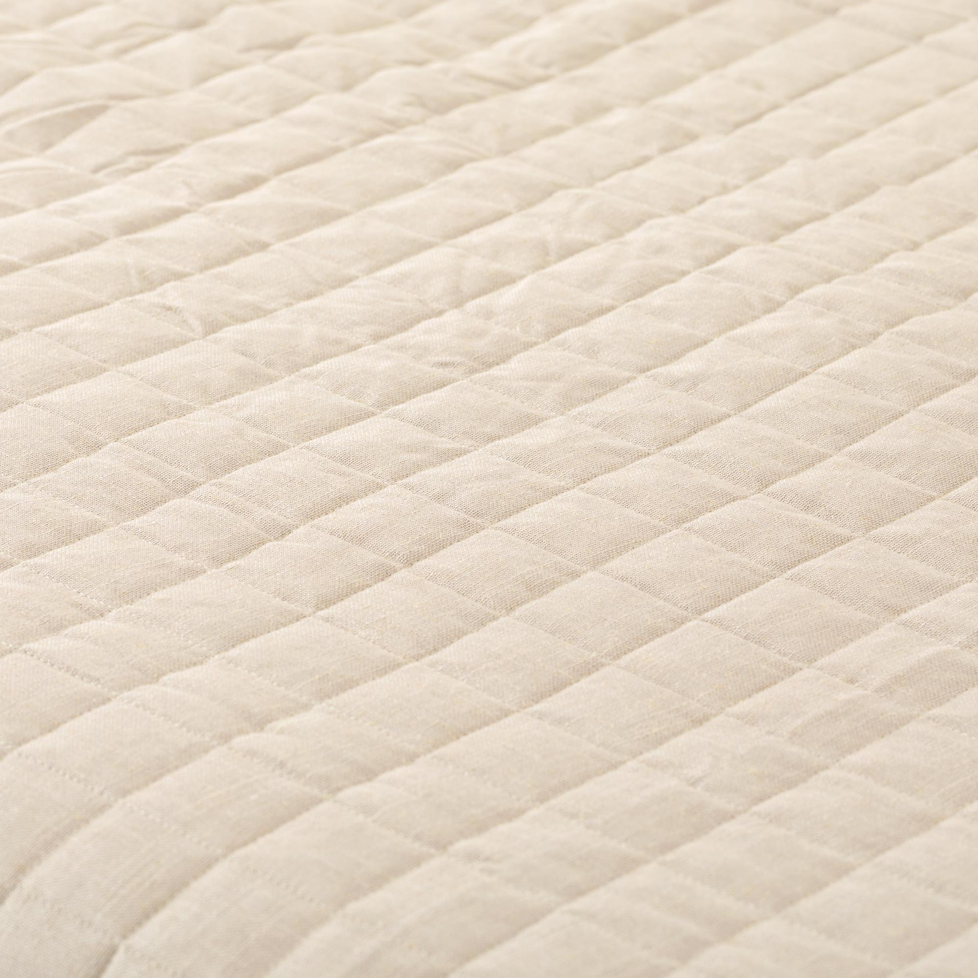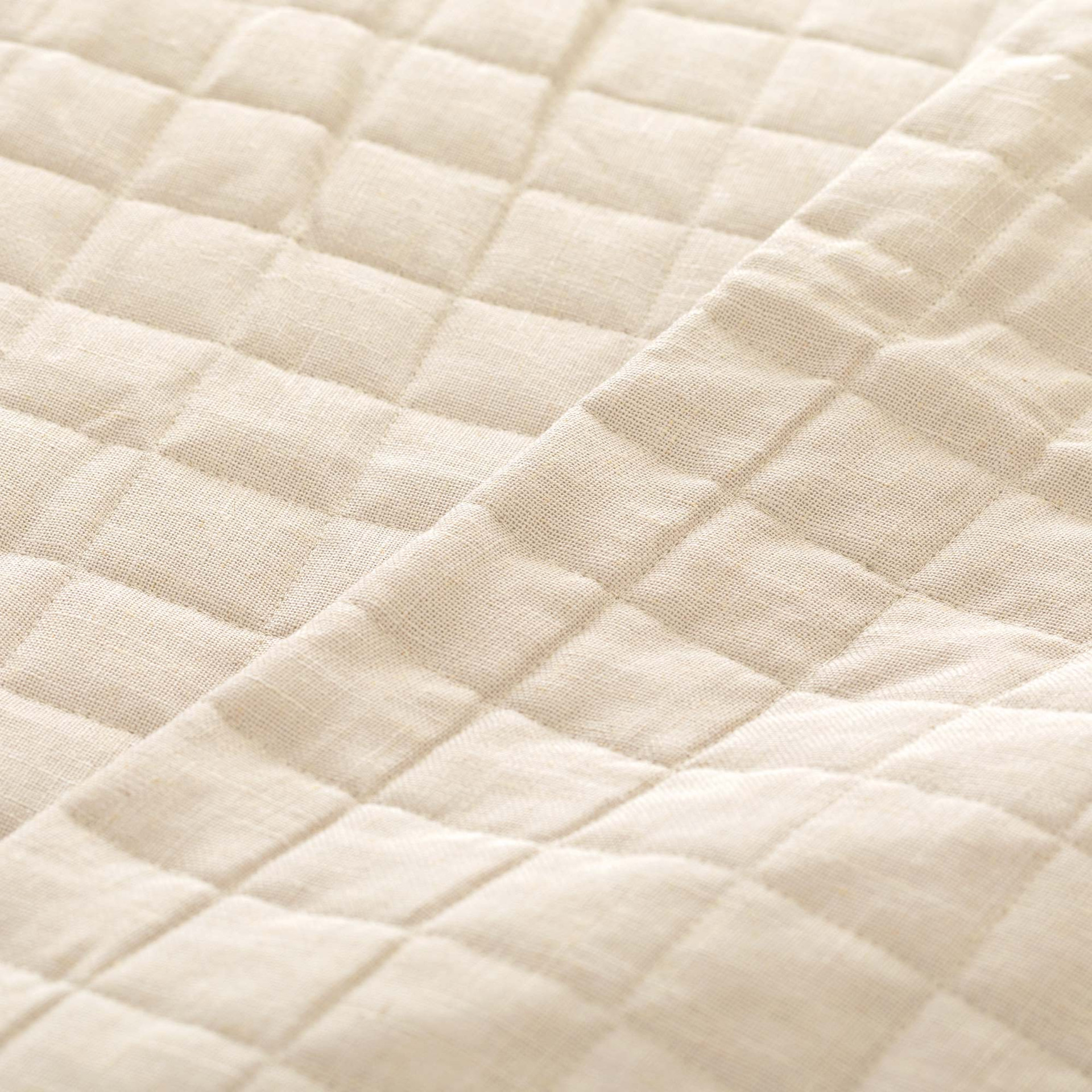 La trapuntatura a quadri da 5 cm dona ritmo e ordine alla superficie, mantenendo l’imbottitura stabile e distribuita in modo uniforme nel tempo. Gli angoli tondi accompagnano con naturalezza la linea del letto, migliorando la caduta laterale e contribuendo a un effetto finale armonioso. La mano del tessuto risulta compatta ma piacevole al tatto, con una texture che richiama l’aspetto del lino senza risultare eccessivamente delicata nella manutenzione quotidiana. Le dimensioni matrimoniali 260x260 cm garantiscono una copertura ampia e proporzionata anche su materassi di nuova generazione.